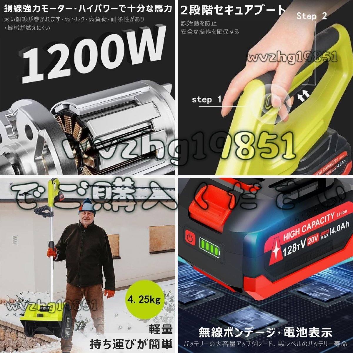 電動除雪機 充電式 雪かき機 コードレス電動スノースロー 除雪幅32cm 除雪高16cm 噴射距離8m 24V/4.0Ah 軽量5KG 角度調節可能 ハイパワー スノーショベル スノーブレイク 家庭用 雪かき シャベル 降雪清掃 電池1個