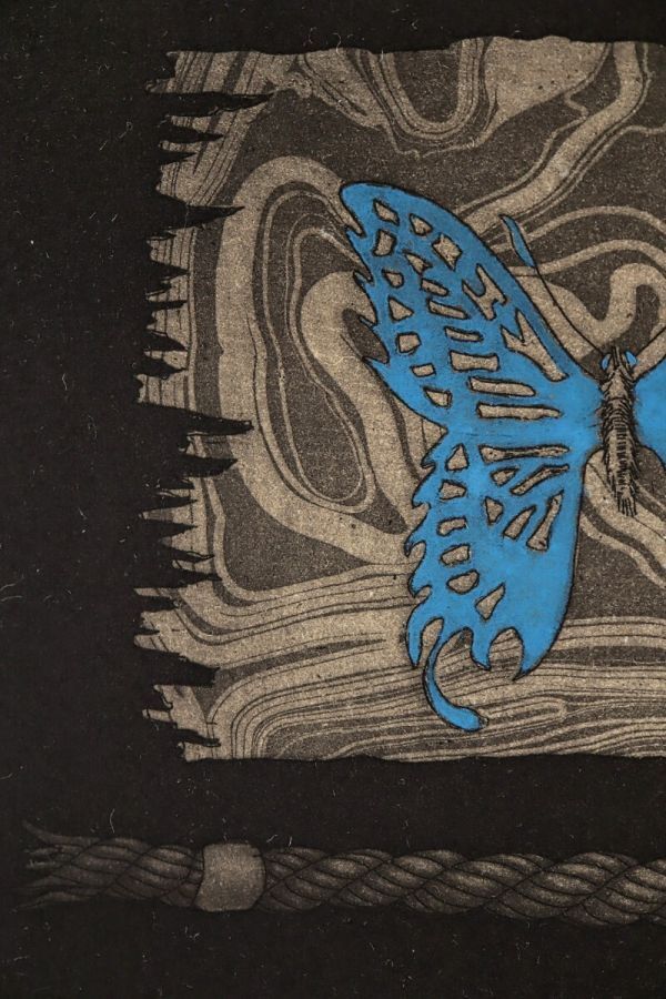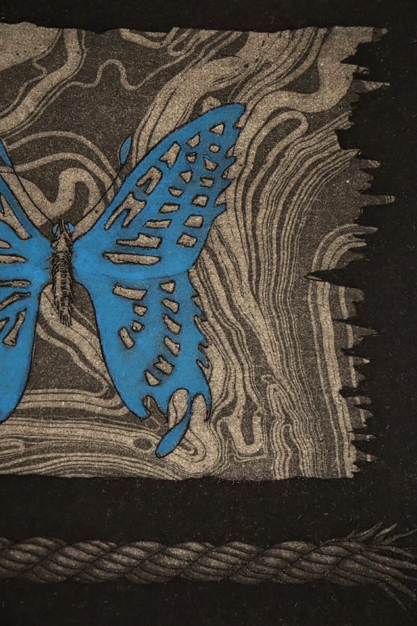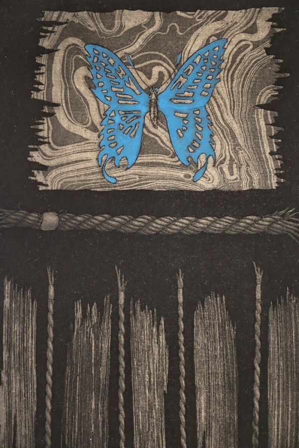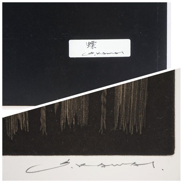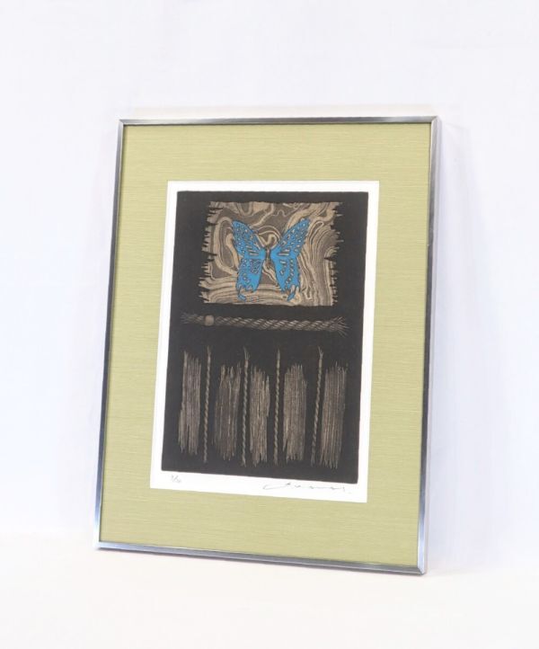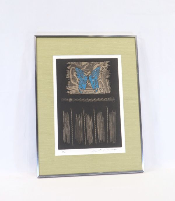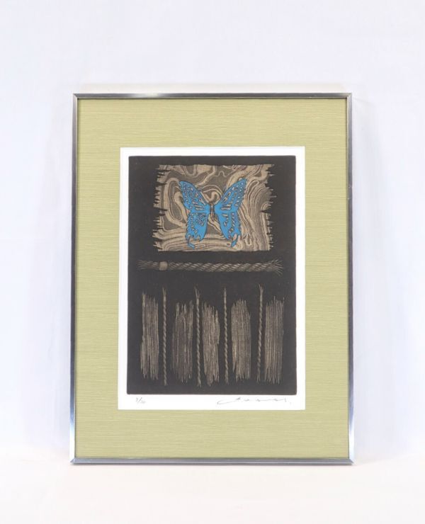 真作 河合勝三郎 銅版画「蝶」画寸 17.5×25cm 宮崎県出身 大阪で活動 50代から制作の銅版画の世界 生命の輝き、一瞬の美しさを暗示 10864