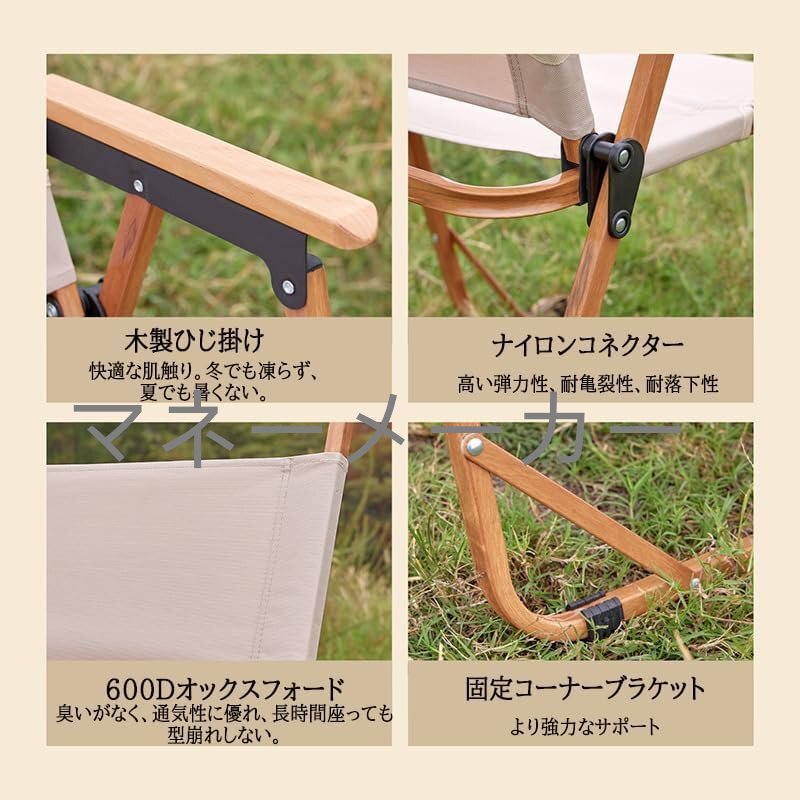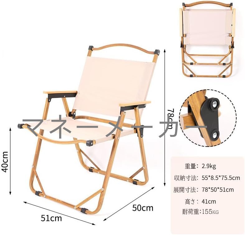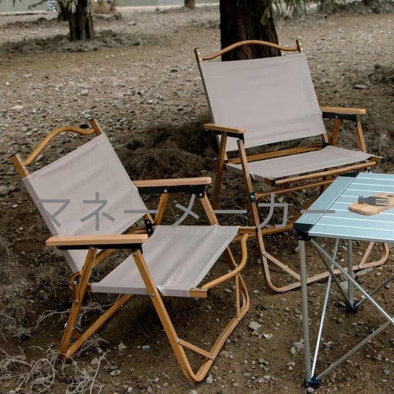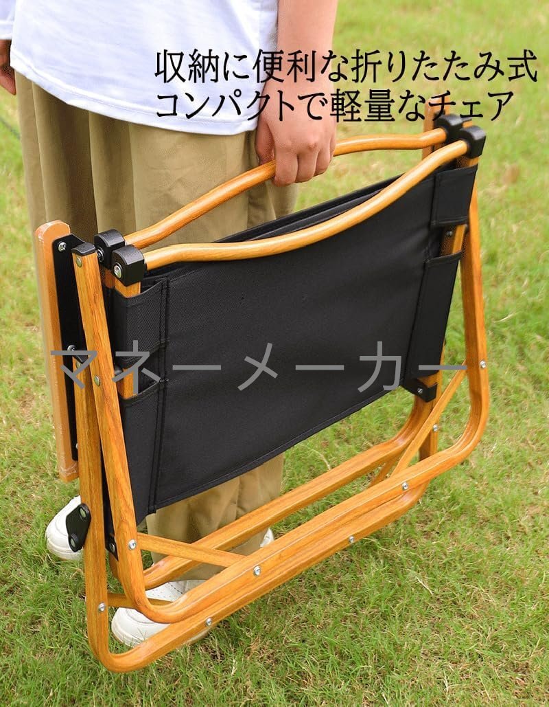 アウトドアチェア キャンプ椅子 折り畳み コンパクト アルミフレーム 携帯便利 木製ひじ掛け 耐荷重155kg (78*50*51cm)