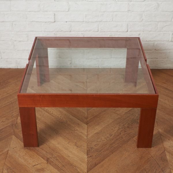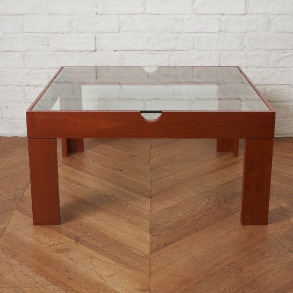 チェリー材を使用した、イタリアモダンスタイルのガラストップ ローテーブルです。