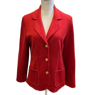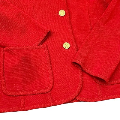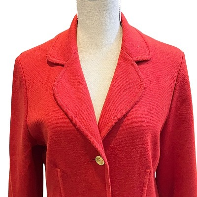 マダムジョコンダ MADAM JOCONDE 美品 ニット テーラード ジャケット 金ボタン ウール 無地 薄手 Mサイズ 赤 レッド STK レディース