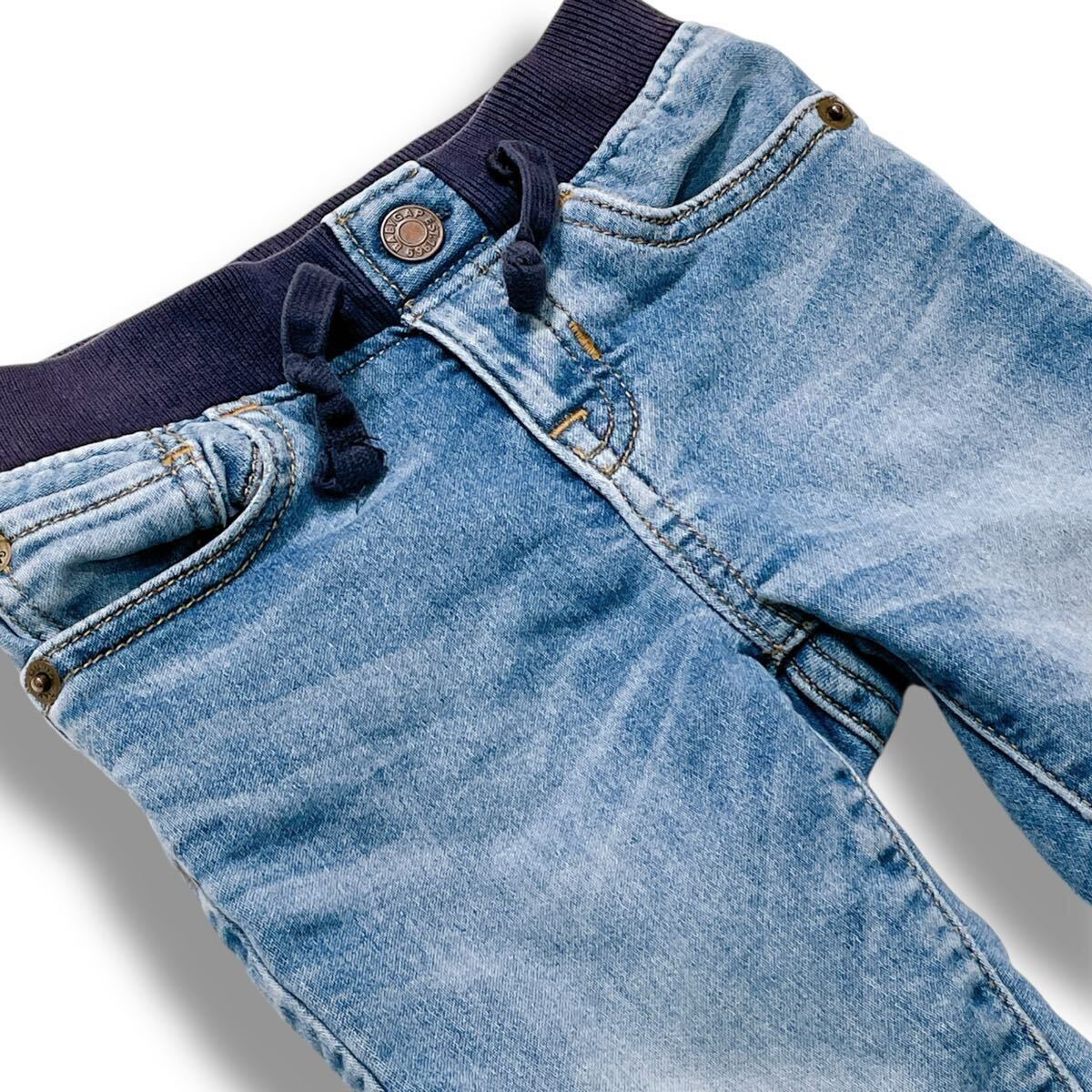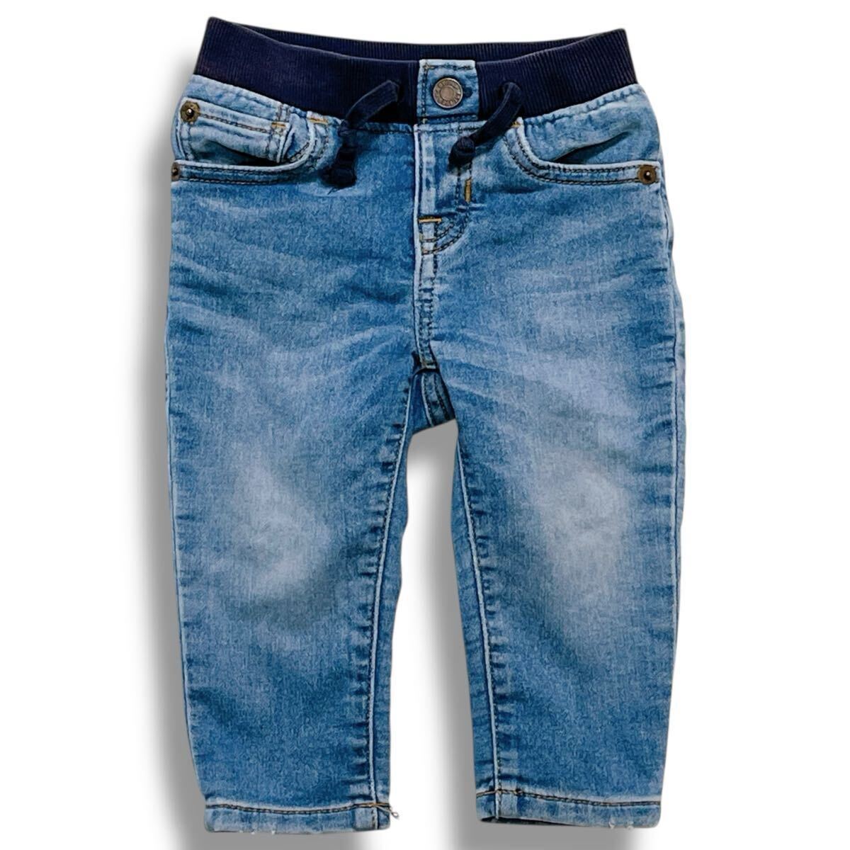babyGAP デニムパンツ ジーンズ 6-12M ネイビーリブウエスト 伸縮性あり 引き紐調整 キッズ ベビー服