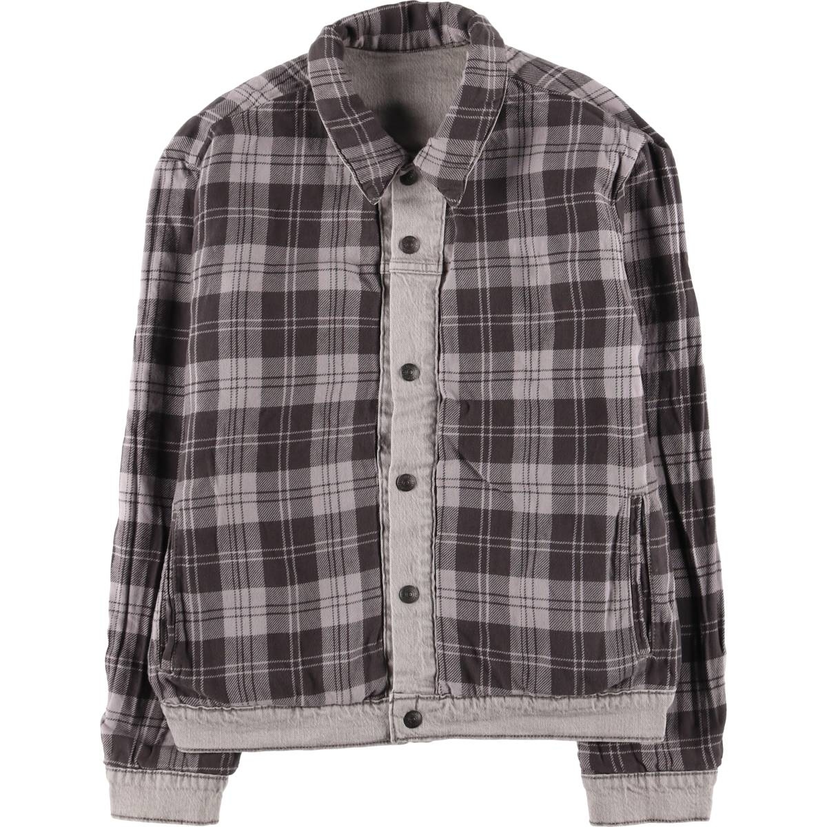 表記サイズ: M 着丈: 60.5cm 身幅: 53cm 肩幅: 46cm 袖丈: 62.5cm ![]() | ![]() ランク:C USEDデニムですので使用感、擦れ、色落ちなどございますが、まだまだご愛用していただけます。 古着という事をご理解の上ご注文よろしくお願いします。 【状態追記】 A面(グレー) ●前、左袖先に汚れ B面(チェック) ●後、右袖先に汚れ |
