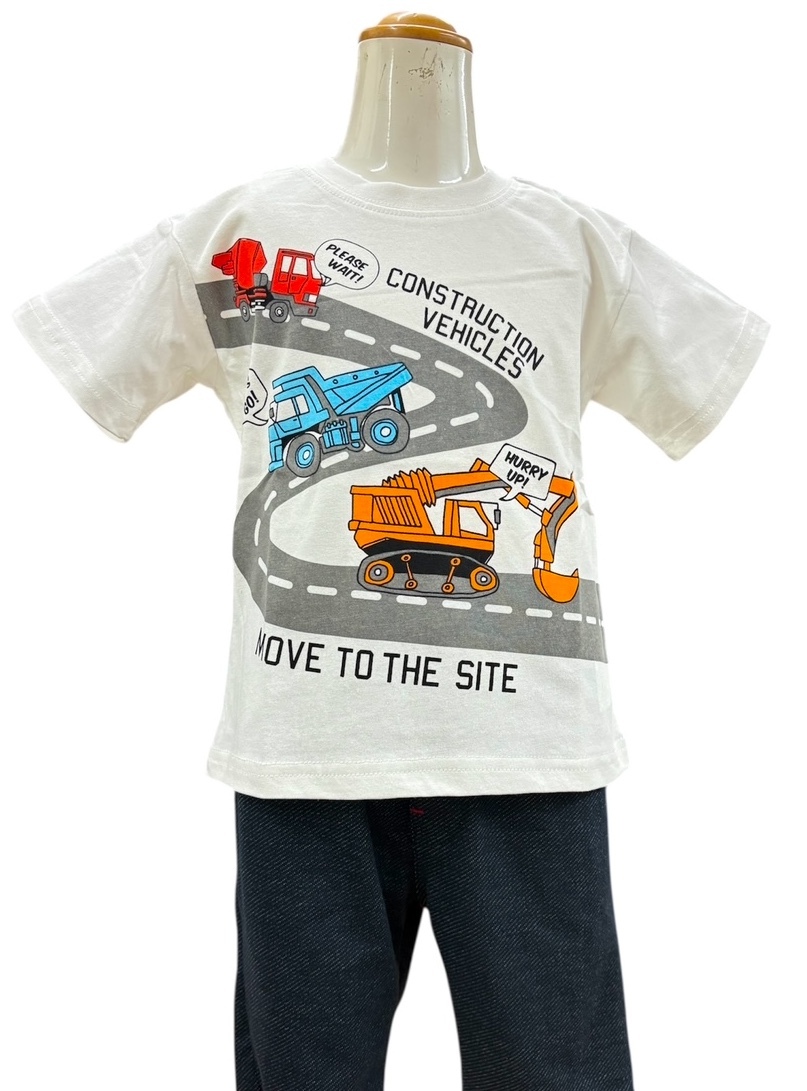 即決 新品タグ付 Crescent クレセント★人気の働く車シリーズ★トラックとクレーン柄 プリント★半袖Tシャツ★子供 110cm 5-6才 ¥1430