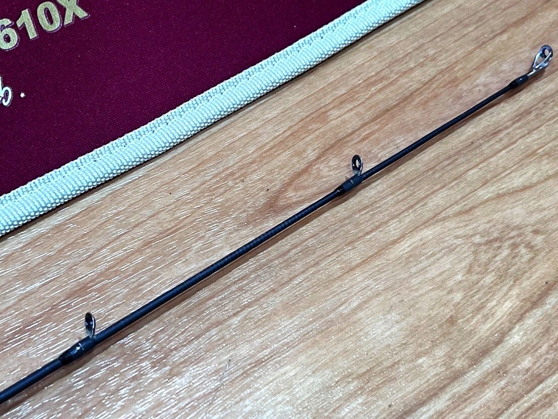 ご覧いただきありがとうございます。現在釣具のストック整理中のため随時追加出品中です。購入時のロッド袋も保管できておりましたので一式での出品です(画像一枚目でご確認ください)こちらは数回使用後に長期保管していたものになり若干のすれがある程度でガイドスレッド等も問題なく今後の使用も問題ないかと思います。希少番手になり長期保管物になりますのでこれらにご理解頂ける方のみのご入札でお願い致します。リール/ロッド/ルアー等随時追加出品していきますのでまとめてお取引等もお気軽にご相談ください。