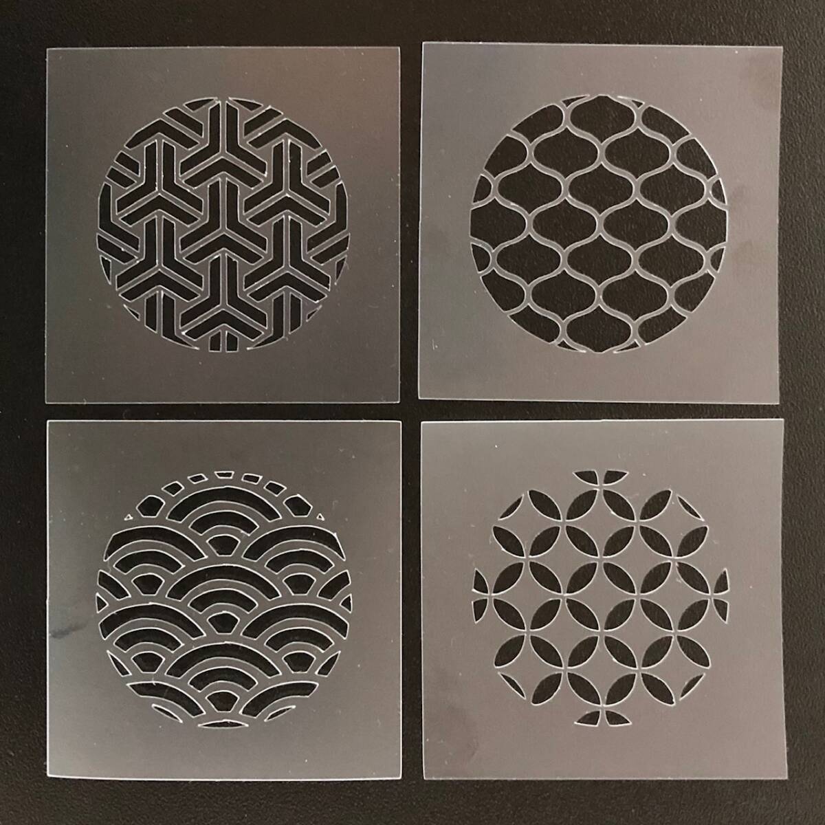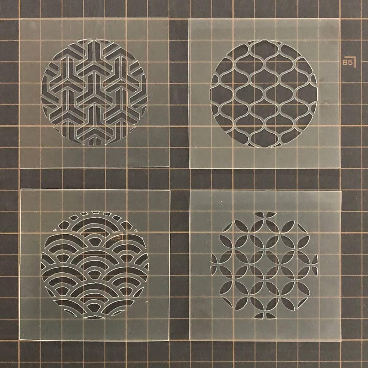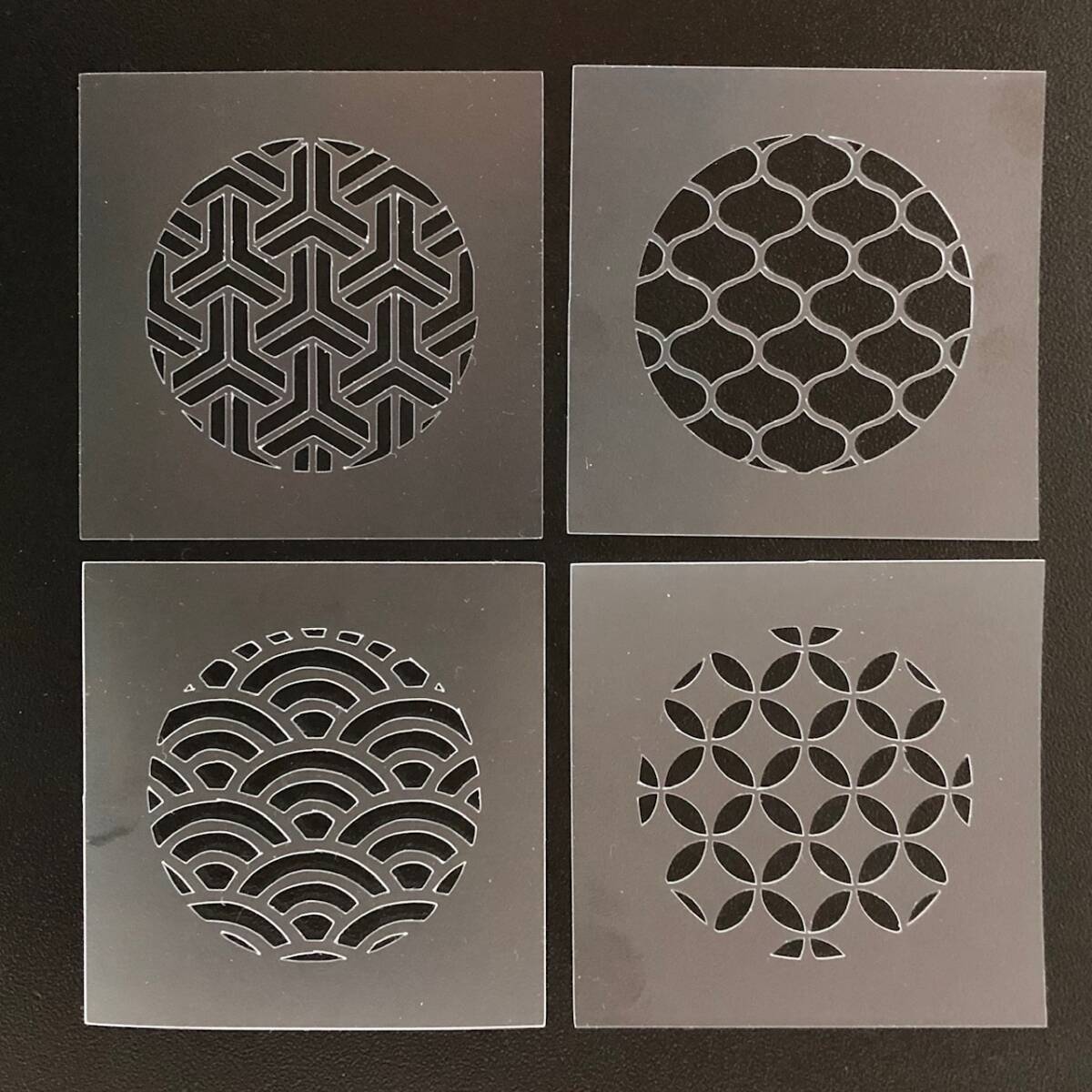 ☆4枚セット 和風地紋 組亀甲 網目 青海波 七宝 ステンシルシート 型紙 図案 NO267