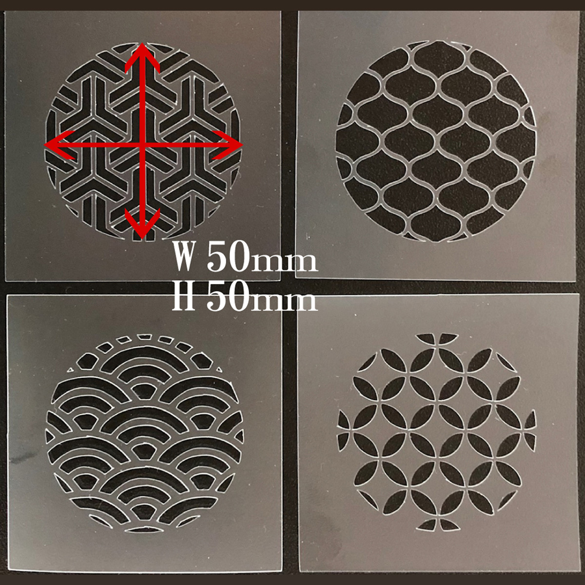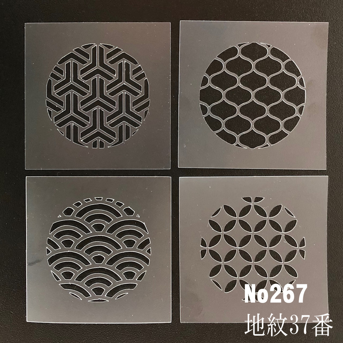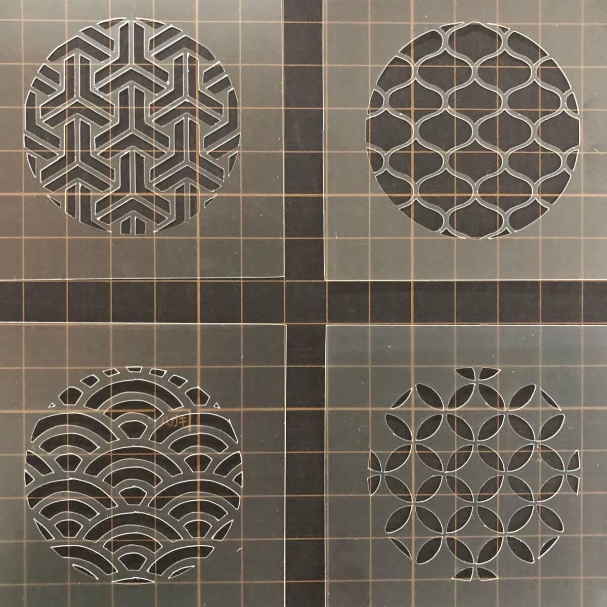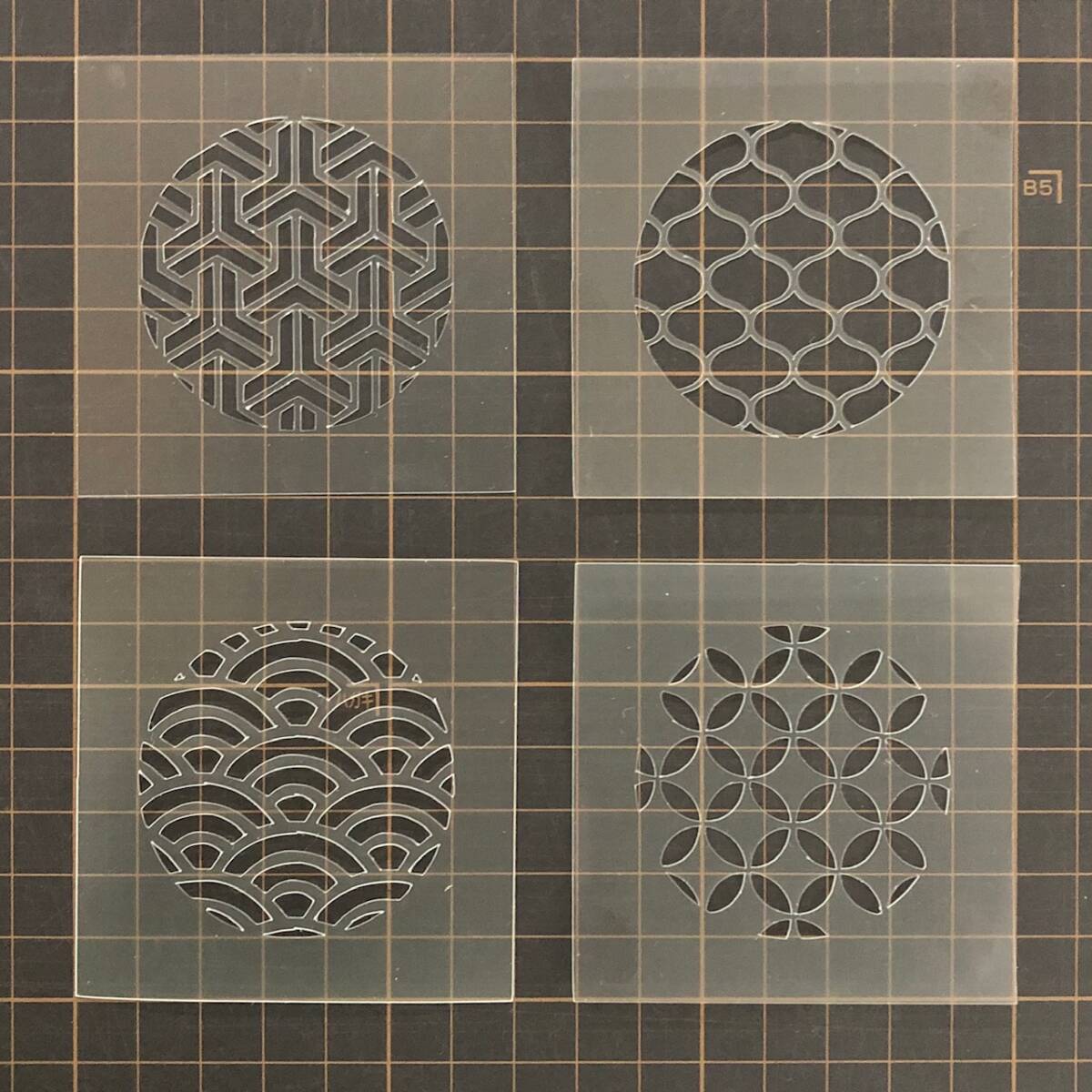 ☆4枚セット 和風地紋 組亀甲 網目 青海波 七宝 ステンシルシート 型紙 図案 NO267