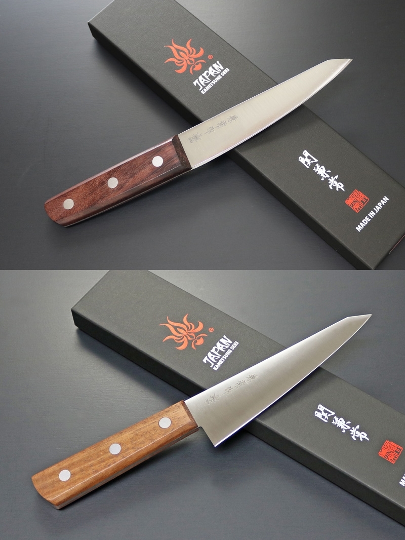 肉処理業者、ジビエ料理人、ハンターなどが愛用する解体包丁シリーズ。信頼の兼常作、純日本製 Made in Seki, Japan。天然木ローズウッドのハンドルは、いわゆる合板材よりも軽くて滑りにくい性質があり「使い心地が違う」と評価されています。用途に応じた独特の形状、鋭い切れ味、ハードユースに耐えうる耐久性を兼ね備えています。焼き入れ、研ぎ、刃付けには職人魂が込められており、鋭い切れ味には定評があります。