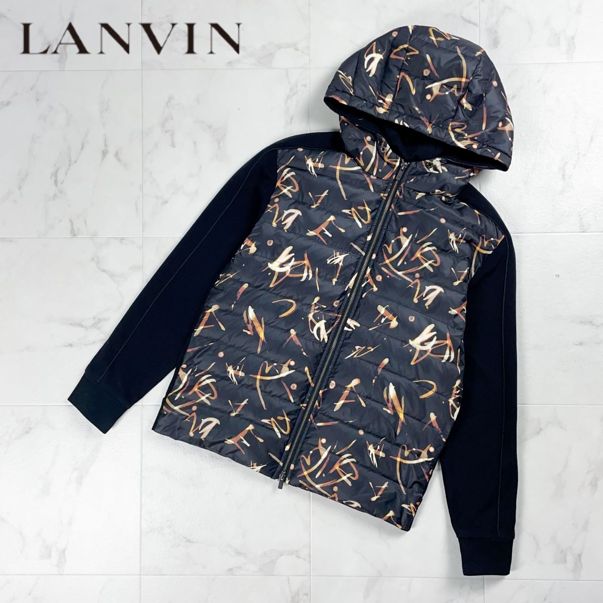 美品 LANVIN en Bleu ランバンオンブルー コンビニット中綿ダウンジャケット メンズ ブラック 黒 サイズ48*BD1201