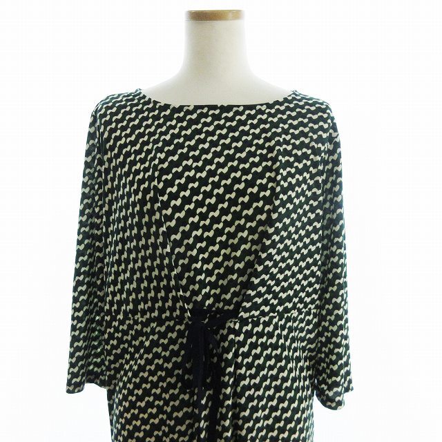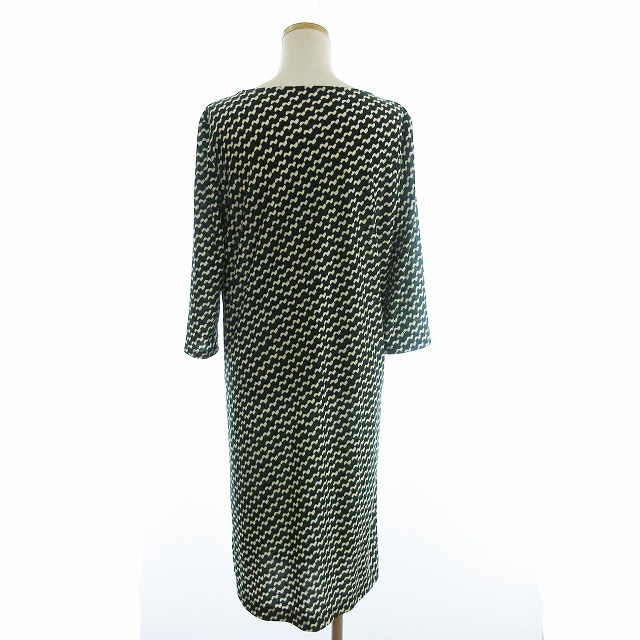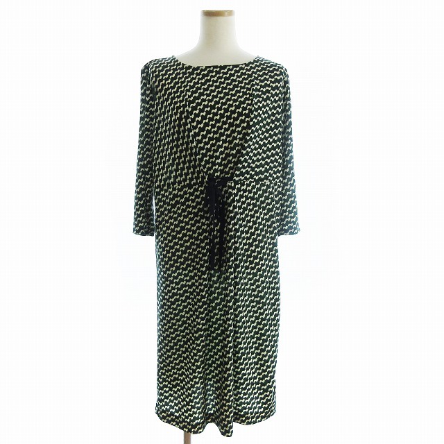 レリアン Leilian 美品 ワンピース ひざ丈 ボックス 七分袖 リボン 総柄 緑 グリーン 11 レディース
