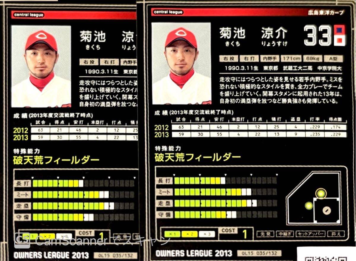 | 商品説明 | この度は、本商品に興味いただきありがとうございます! プロ野球オーナーズリーグ DRAFT15 GR 菊池涼介×1枚 広島 になります。(2枚まで落札いただけます) 本商品入手後、すぐにスリーブに入れてありますが、初期キズ等があるかもしれませんので、神経質な方はご入札をご遠慮願います。 その他、出品している商品(トレカのみ)も同時落札して頂きました場合、同梱発送いたします。(送料は実費) 商品の性質上はノークレーム・ノーリターンでお願いします。 |