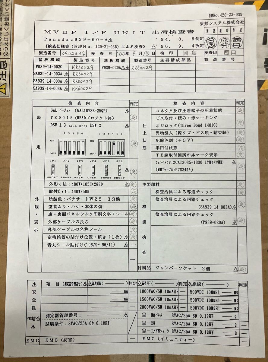 K502-3 Panasonic Panadac 939-60-A  未使用 即納
