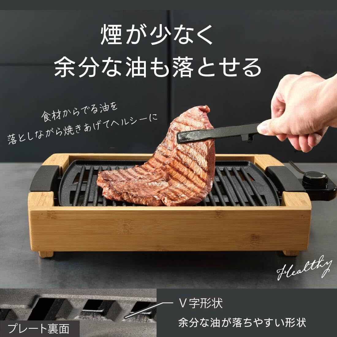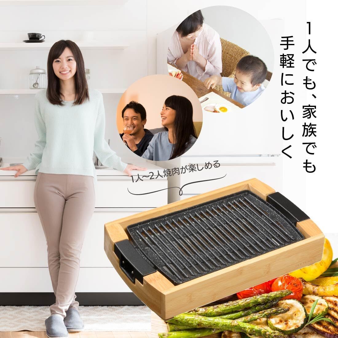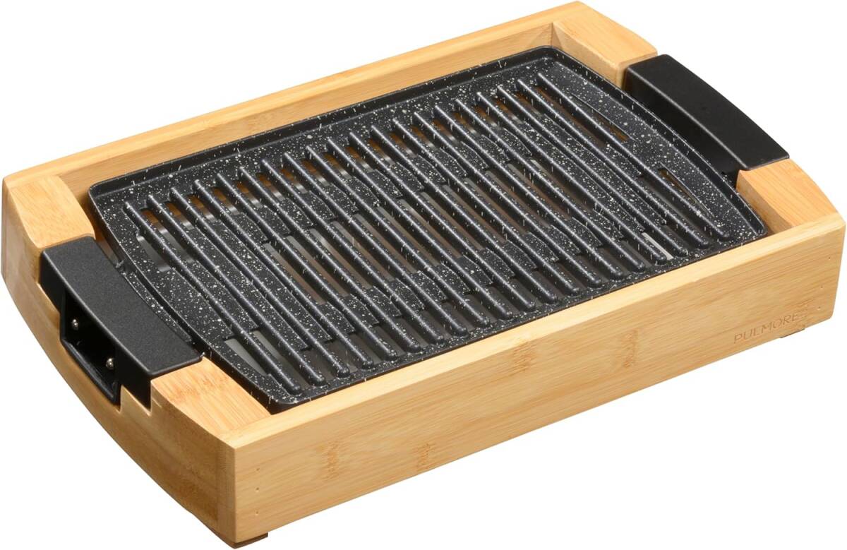 楽しい会食 オーム電機PULMORE ホットプレート 焼肉 コンパクトプレート ミニグリルプレート 竹製土台