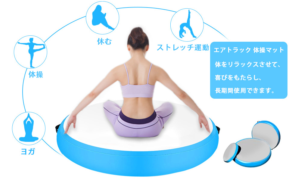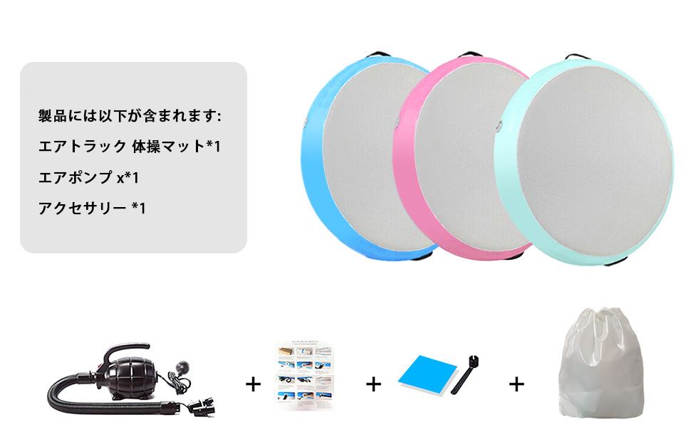 【製品仕様】体操転倒マット直径は1mと2m、厚さは10cmと20cmと、サイズも豊富に揃っています。高出力の電子エアポンプが付属しており、膨らませたり縮めたりするのに1?2分しかかかりません。コンパクトなサイズと軽量設計により、持ち運びや保管が簡単です。