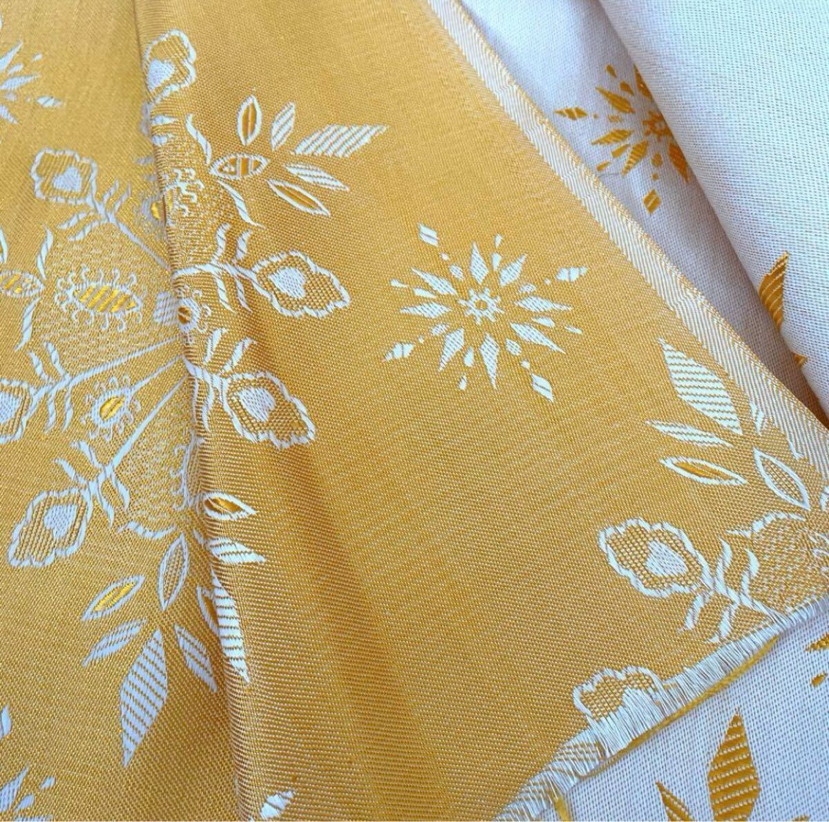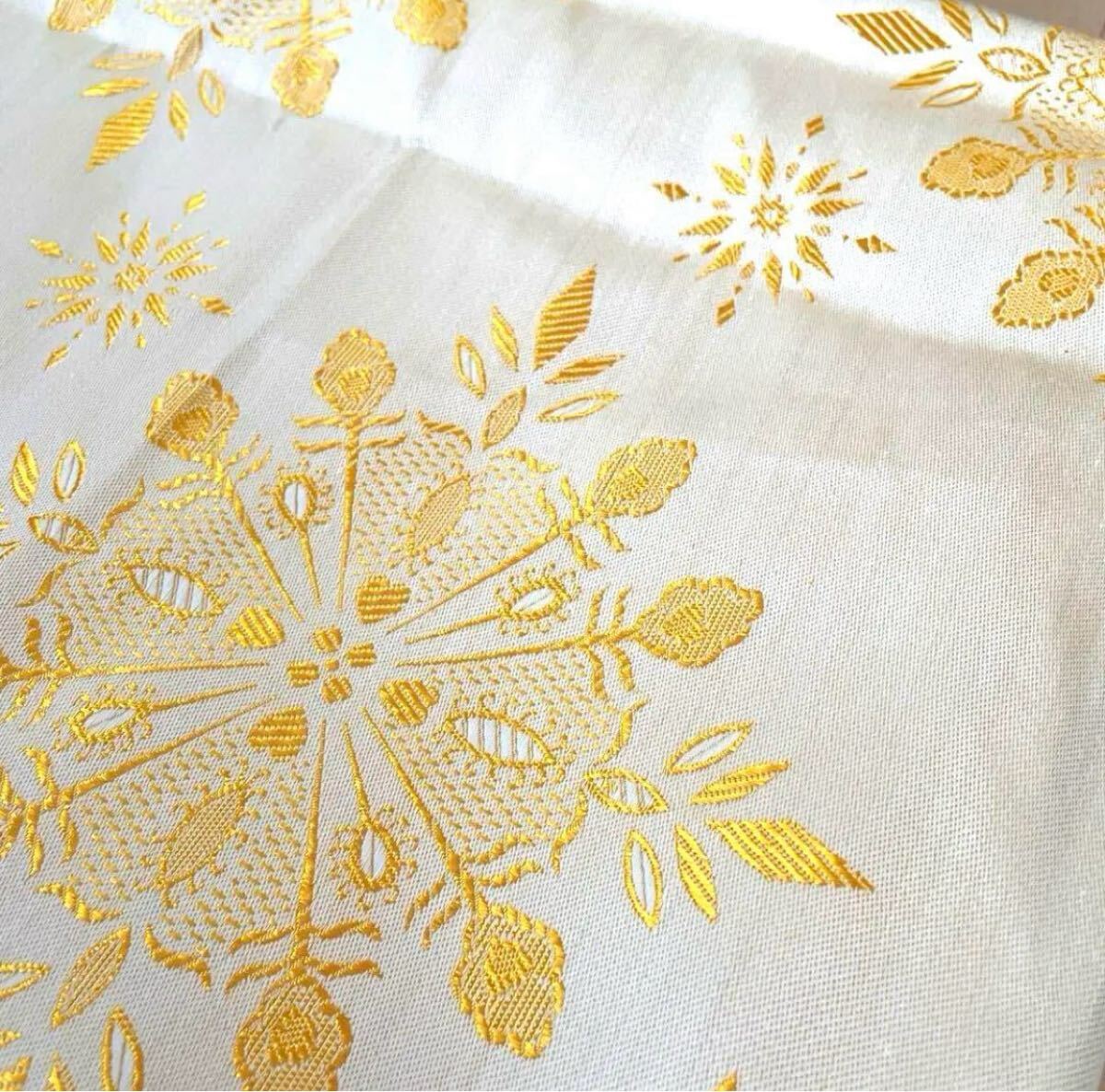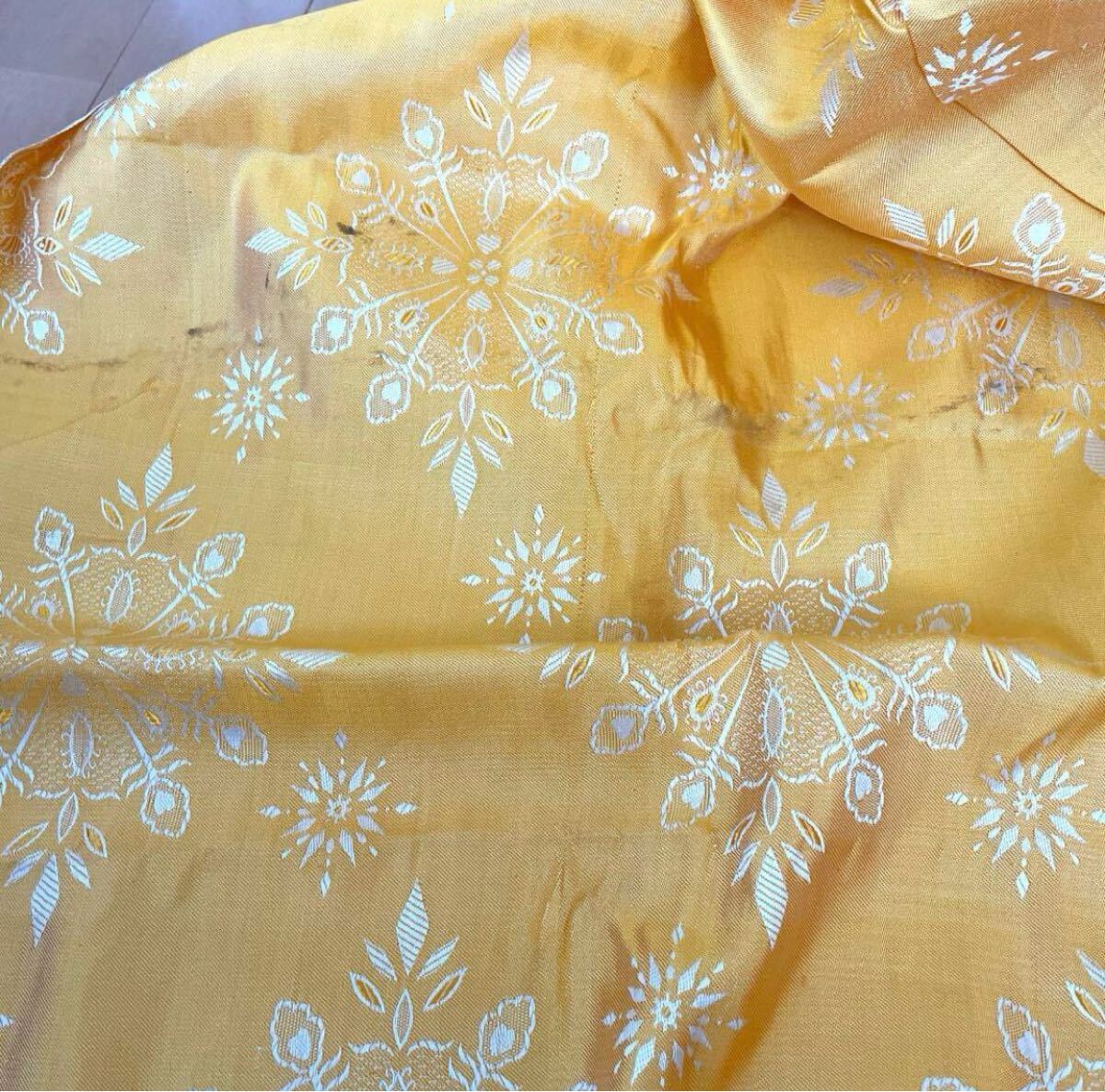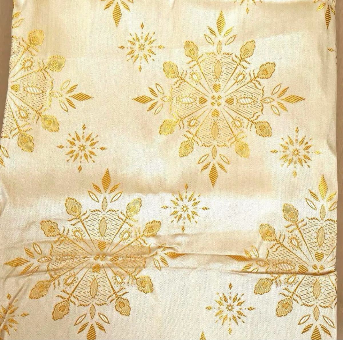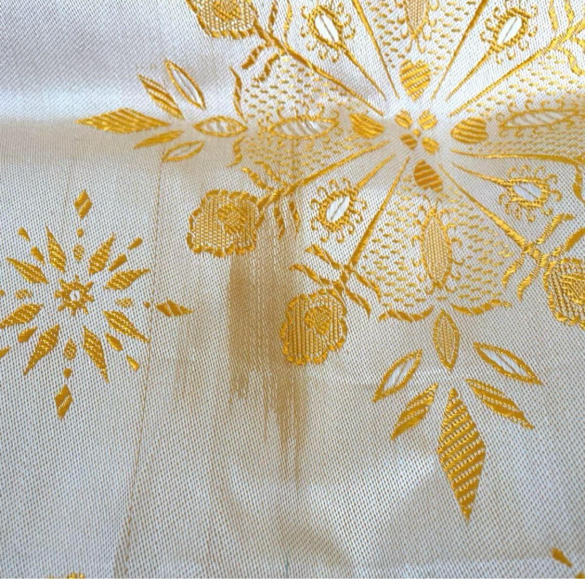 しっかりとした光沢のある素材で、模様が刺繍されています。