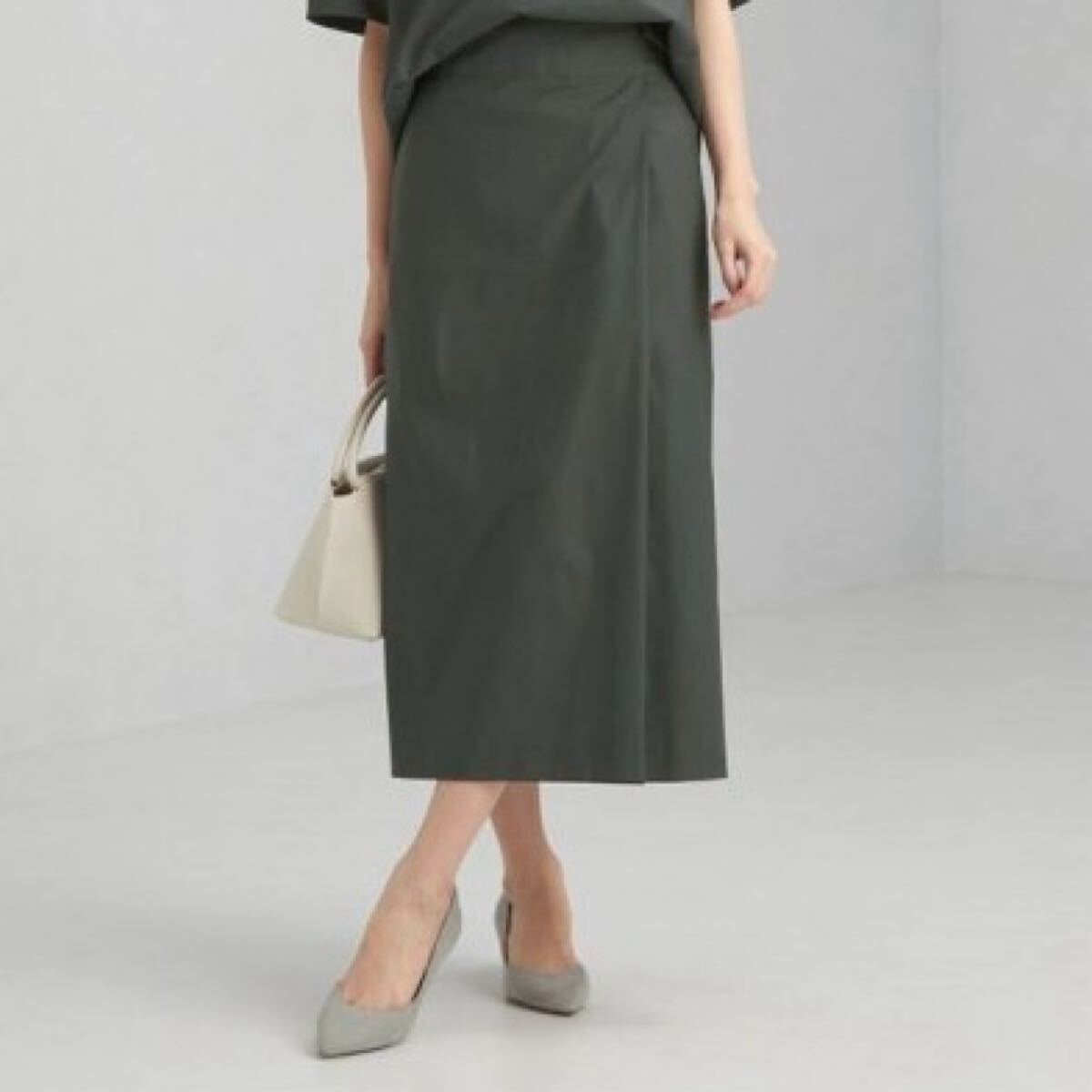 和748★ GREEN LABEL RELAXING グリーンレーベルリラクシング スラブマット タック タイトスカート ロングスカート 36 グレー レディース