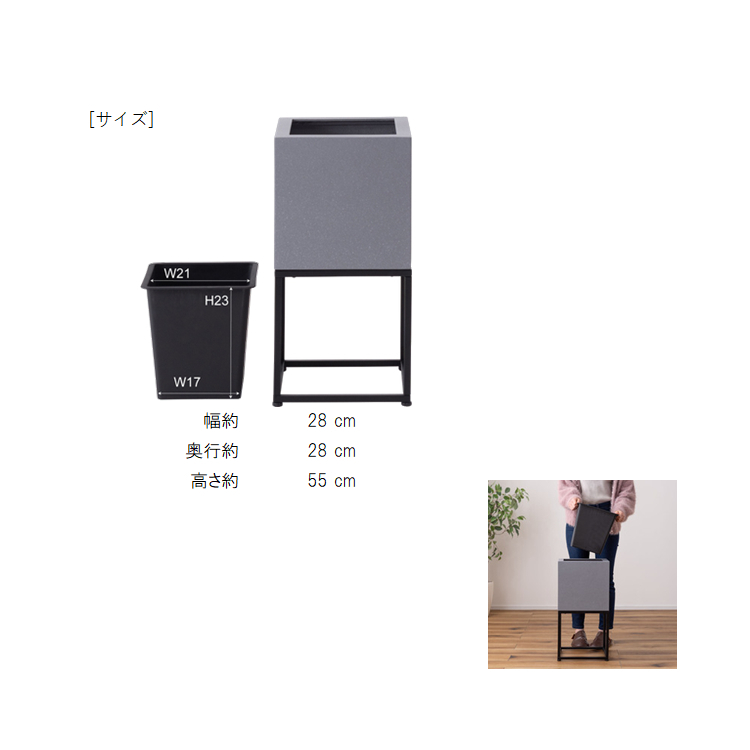 サイズ(インナー内寸)/上部21×21、底部17×17、高23cm