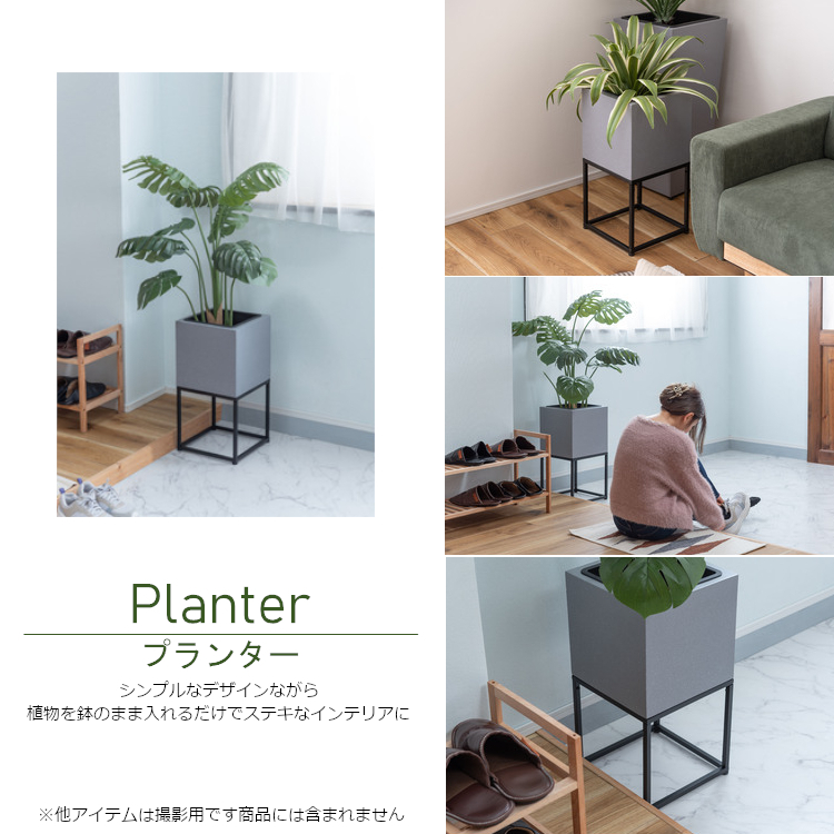 お部屋に癒しのグリーンを。インテリアグリーンのベースをスタイリッシュにカバーして、空間をおしゃれに演出。