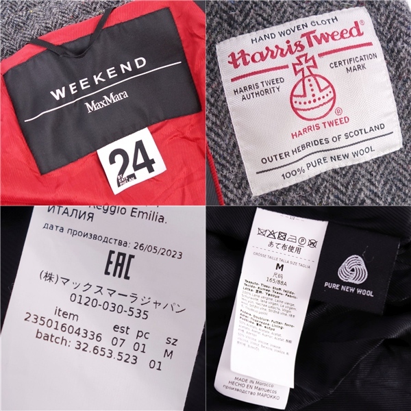 | 極美品 マックスマーラ Max Mara WEEKEND コート 2023 ロングコート ハリスツイード ウール レディース M グレー |