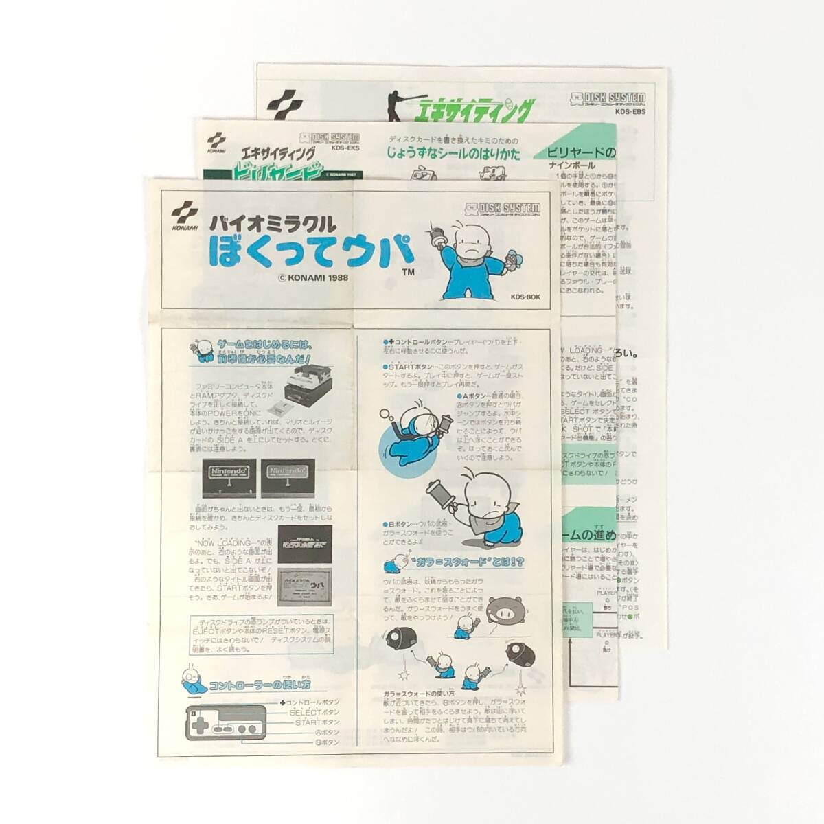 【送料無料】 ファミコン ディスクシステム用ソフト 説明書のみ コナミ作品 3枚セット 痛みあり 【バイオミラクル ぼくってウパ 他】