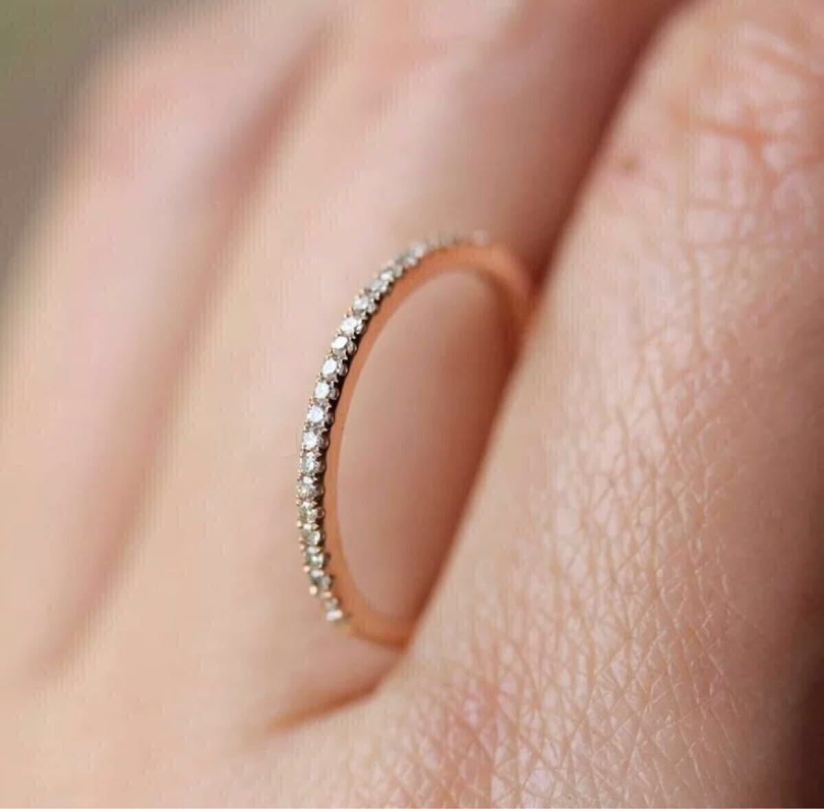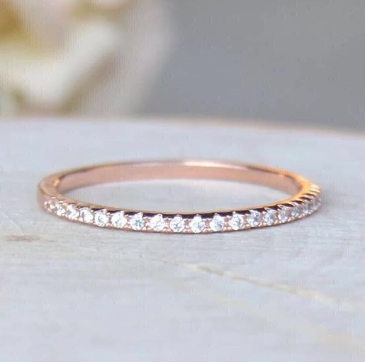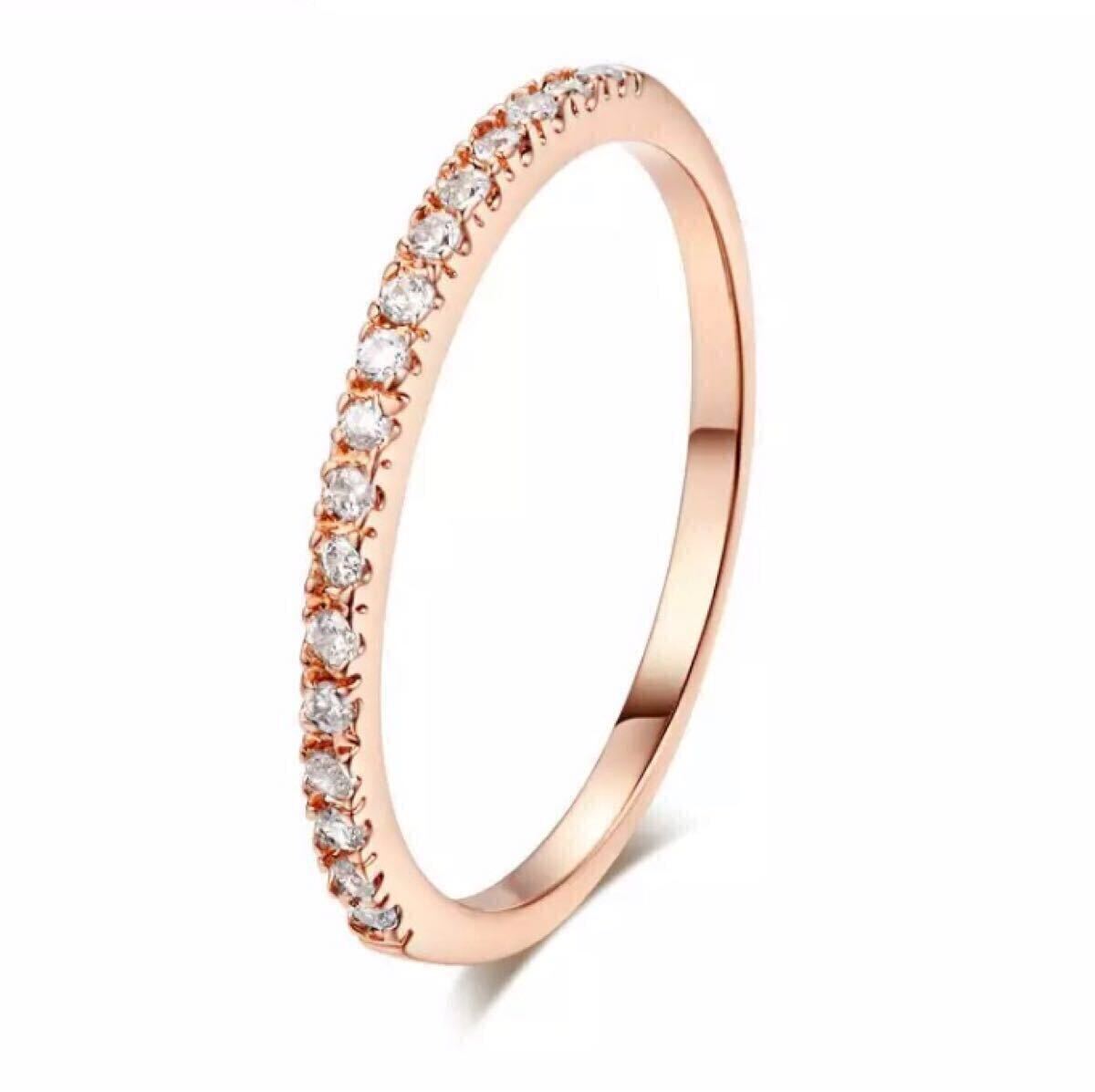 ピンクゴールドに、AAACZダイアモンドをあしらったシンプルなハーフエタニティリングです。細身のリングで重ね付けにもおすすめです。