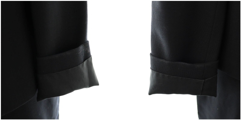 【実寸サイズ】ジャケット 肩幅:約38cm ジャケット 身幅:約47cm ジャケット 袖丈:約60cm ジャケット 着丈:約56cm パンツ ウエスト:約69cm パンツ もも幅:約22cm パンツ 裾幅:約24cm パンツ 股上:約25cm パンツ 股下:約77cm スカート ウエスト 約64cm ヒップ 約88cm 総丈 約66cm