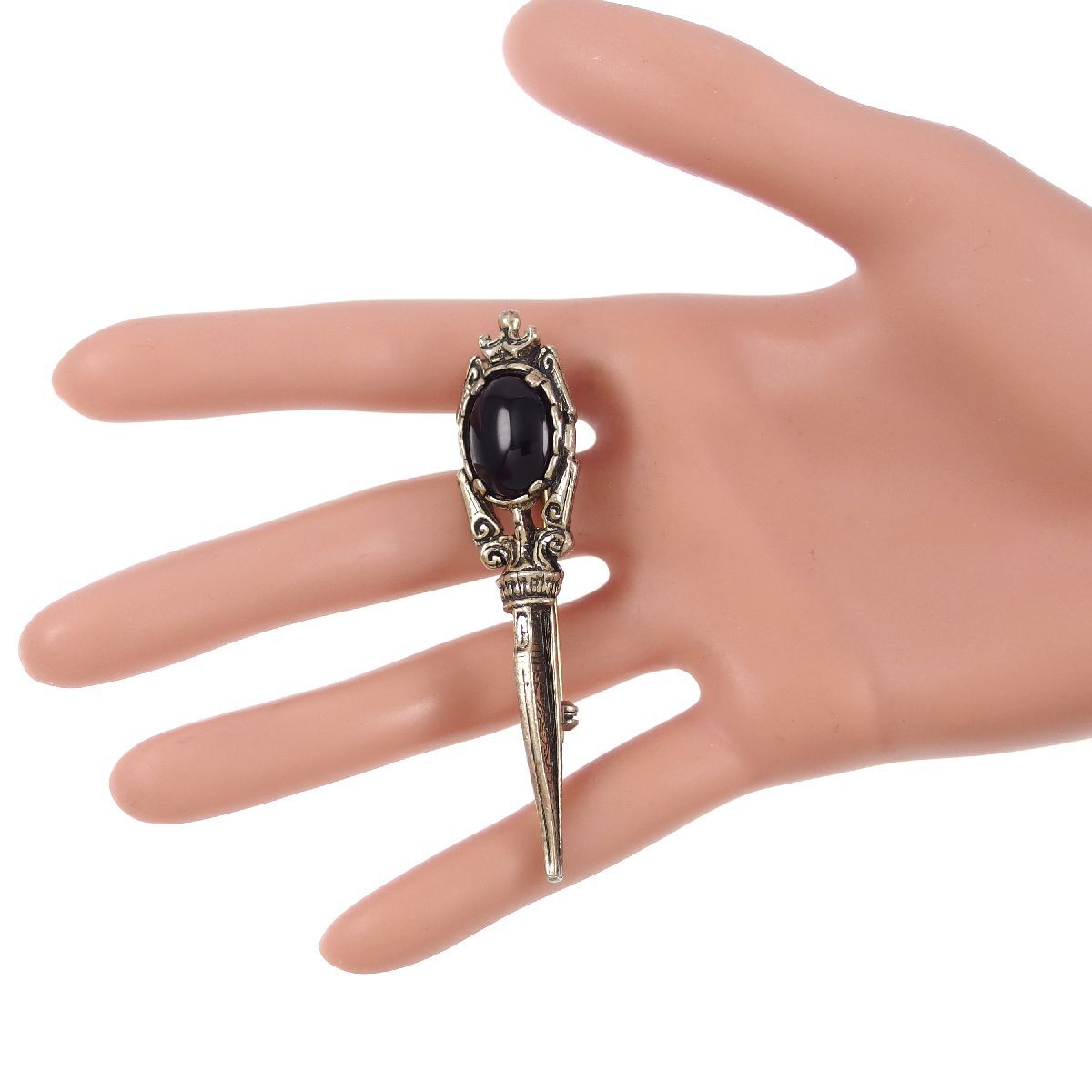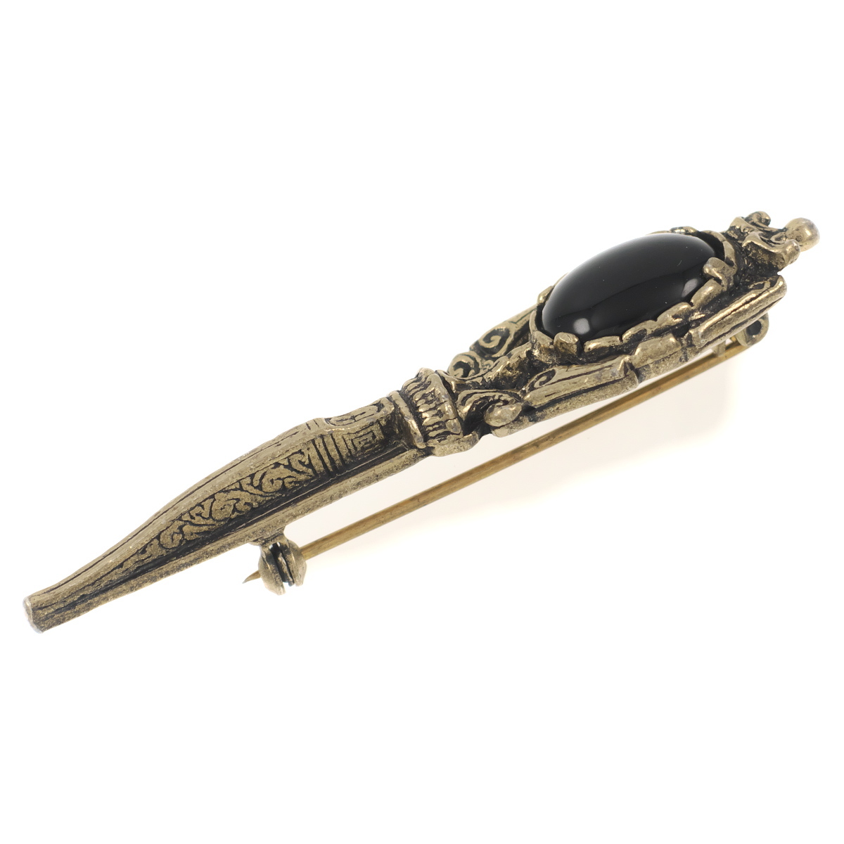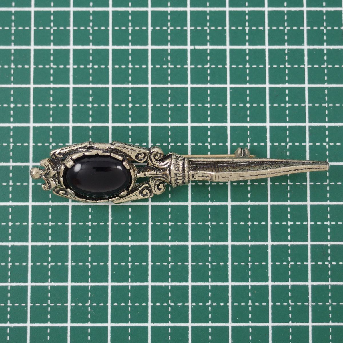 UK3820◆【MIRACLE】◆ ソード 剣モチーフ ブラックカボションストーン ケルト 英国 ミラクル ◆ ヴィンテージブローチ◆