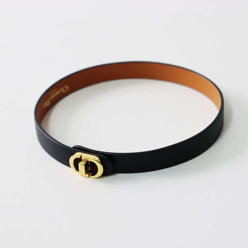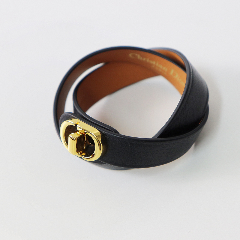 極美品 クリスチャンディオール Christian Dior 30 Montaigne カーフスキン ダブルブレスレット/ブラック ターンロック【2400013691031】