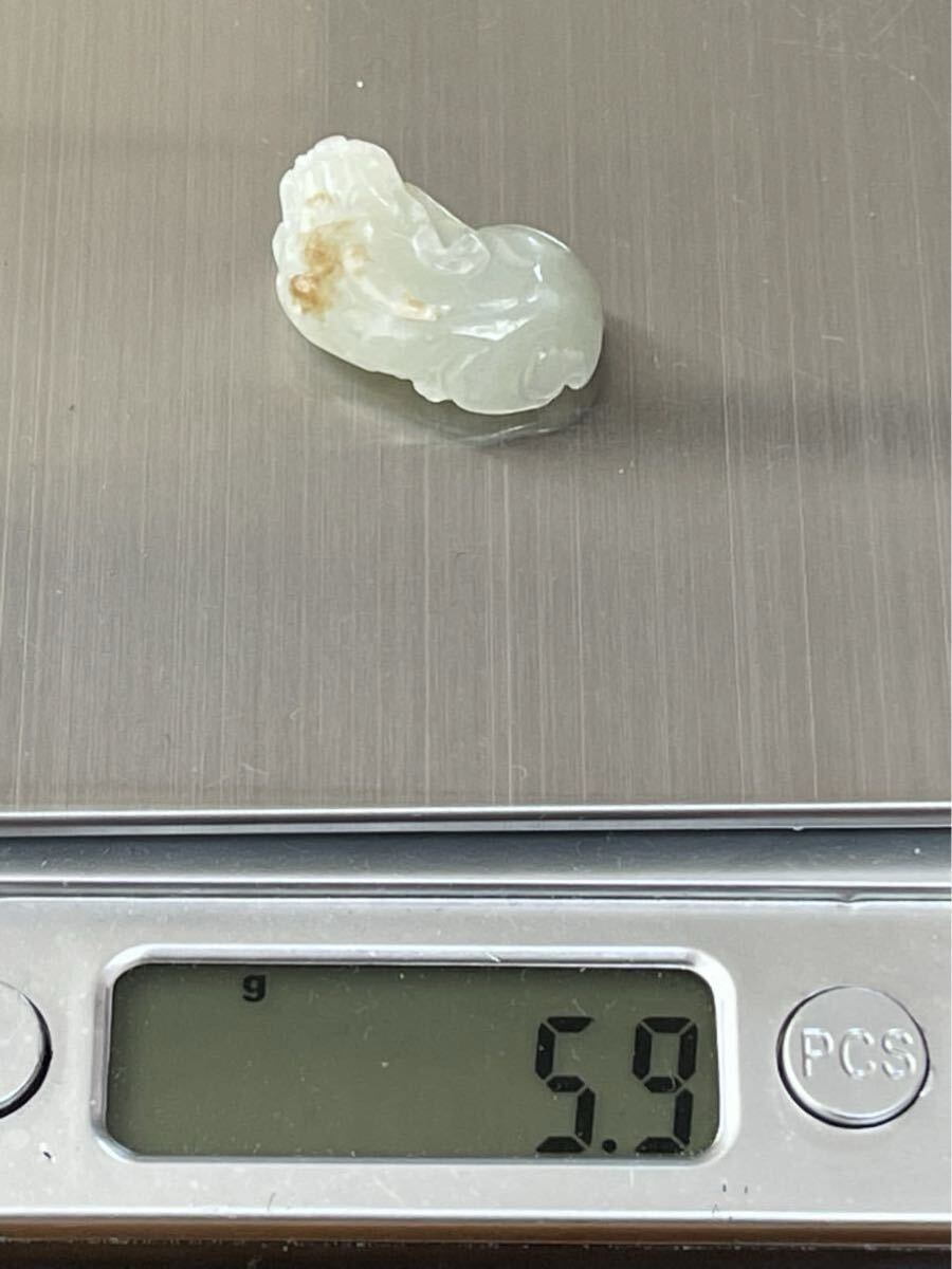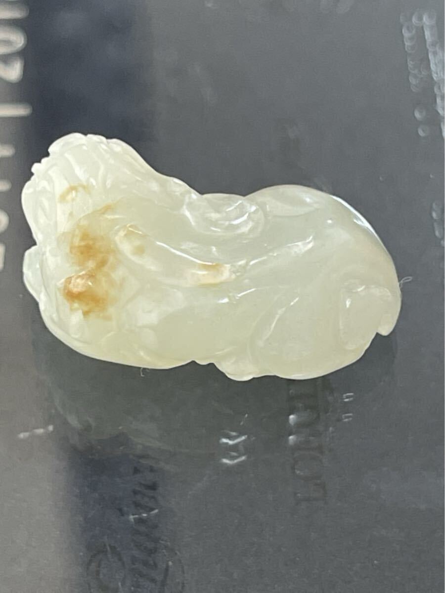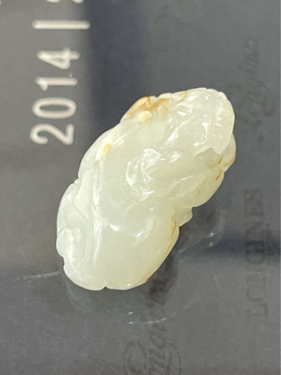 貴重 和田玉 貔貅 彫刻 ペンダント 皮付 珍しい 25.2mm×14.3mm×11.2mm 重さ5.9g 古玩 コレクション