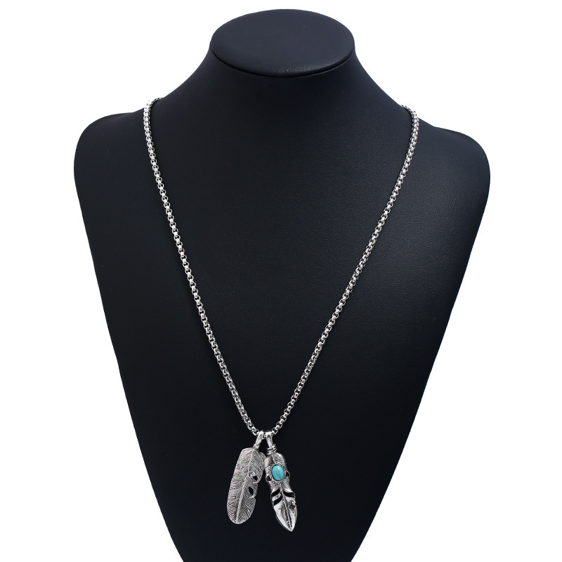 新入荷新品未使用 フェザー ネックレス メンズ シルバー ターコイズ ペンダント イーグル ペンダント 羽根 鷹 アメカジ