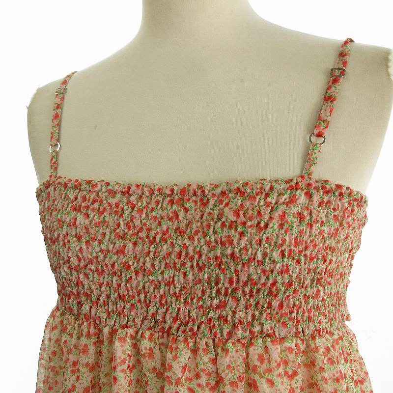 グリーンレーベルリラクシング ユナイテッドアローズ キャミワンピース ロング 花柄 シフォン リボン ピンク 赤 レッド