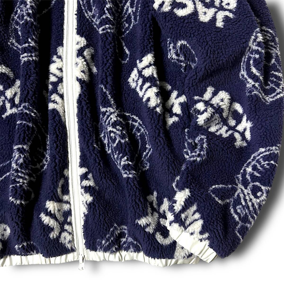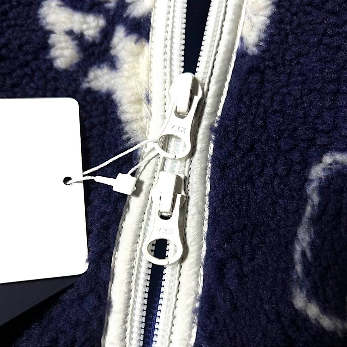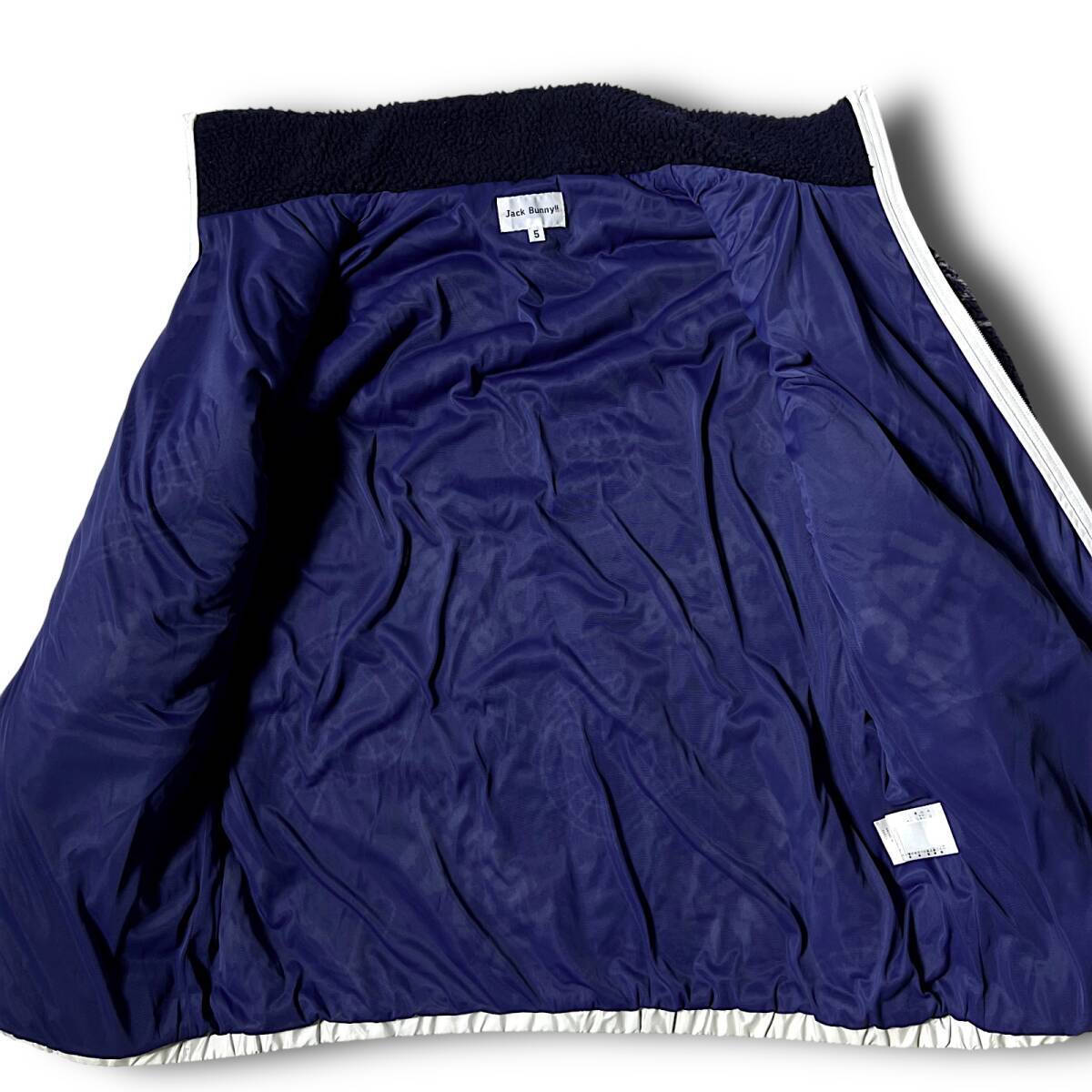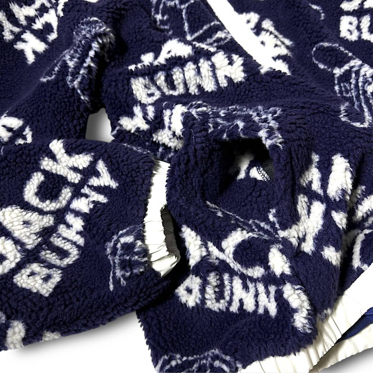 タイトル 新品 Jack Bunny!! ジャックバニー パーリーゲイツ ドラえもん 防風 防寒 保温 起毛 ビッグロゴ総柄 フルジップ ダブルジップ ハイネック ボアフリースジャケット ボアジャケット ブルゾン ゴルフウェア 4 M 相当 メンズ GOLF スポーツ レジャー 普段使い タウンユース カジュアル 秋冬 AW FW 120 ネイビー系