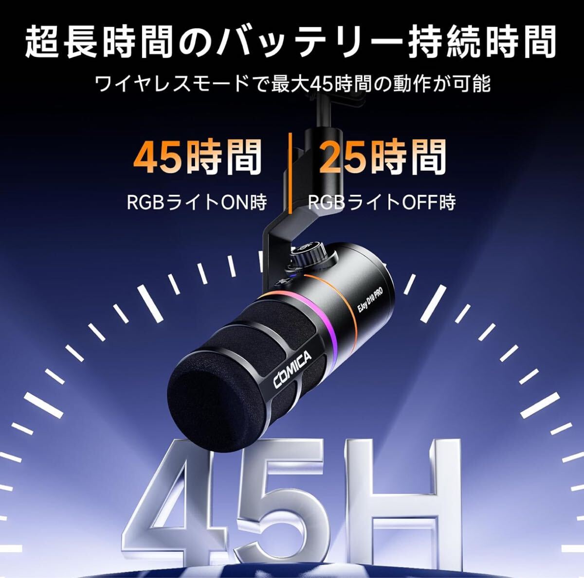 【2.4GHzワイヤレス&有線デュアルモードマイク】EJoy D10 Pro ダイナミックマイクは、ワイヤレスモジュールを内蔵し、有線とワイヤレスの2つの出力モードをサポートしています。ユーザーは異なるニーズに応じて自由に切り替えることができ、より柔軟な使用体験を楽しめます。ワイヤレスモードでは、マイクは受信機を介してデバイスに接続され、ケーブルの制約から解放され、より自由な使い方を実現します。