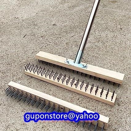 状 態:新品未使用 【機能】路面の滑り止め性能を高めることが主な目的である.セメントコンクリート舗装はアスファルト舗装より滑らかで,滑り止め性能が悪い.特に雨天時は運転に影響を与えやすい.安全性 ブラッシングにより、タイヤと路面の間の摩擦が増加し、路面の滑り止め性能が向上します。 【使用シーン】 コンクリートゴテや電動コンクリートポリッシャーの施工後のコンクリートの初期打設時に使用するワイヤーブラシで、モルタルが手にくっつかず、コンクリートが軟らかい。 【素材】4列の0.5mm硬化炭素鋼線、丈夫で変形しにくく、耐摩耗性があり長寿命。 【使用工程】 型板に寄りかかり横斜面方向に進行する描画装置で、途中で停止しないようにすると、描画の質感がなめらかで美しく、水はけを良くする連通溝を形成します。 【マルチシーンでの使用】傾斜のあるコンクリート床、滑走路、駐車場、タイルが必要なコンクリート面での使用。 【仕様】 セメントブラッシングワイヤーブラシ 【1.8m延長ハンドル+3ブラシヘッド】 ブラシ ワイヤー: ワイヤー長さ 25 mm、0.5 mm 炭素鋼ワイヤー ブラシ ヘッド ブラシヘッドサイズ:4cm×40cm ブラシ間隔:2cm ハンドル: ミディアム 25mmx1.8m ステンレス鋼