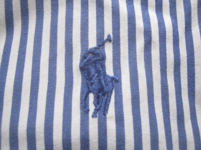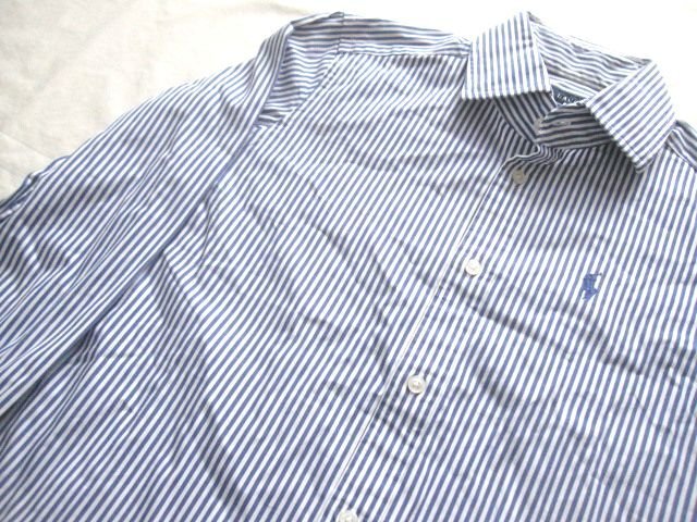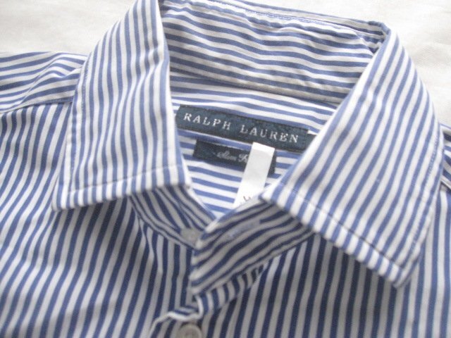 RALPHLAURENラルフローレン ターンナップカフスドレスシャツ6 白青ストライプ。ユーズドです、古着なりの使用感ございます、着用に差し支える大きなダメージはございません。ノークレームノーリターンノーキャンセルでお願いします。