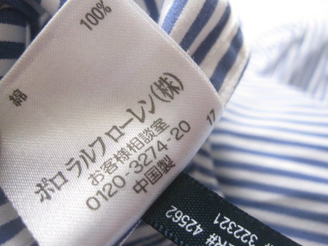 RALPHLAURENラルフローレン ターンナップカフスドレスシャツ6 白青ストライプ