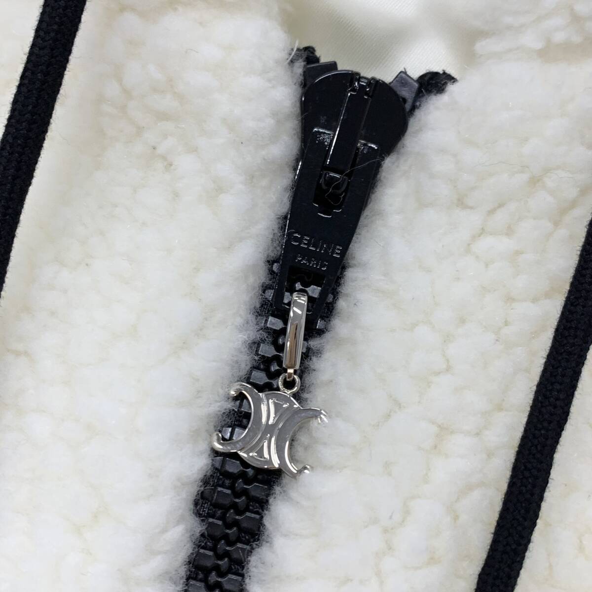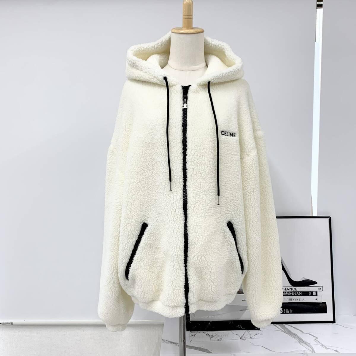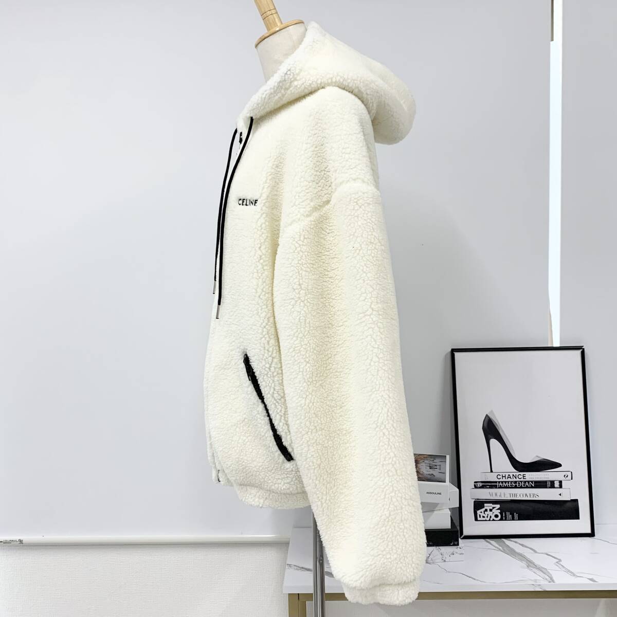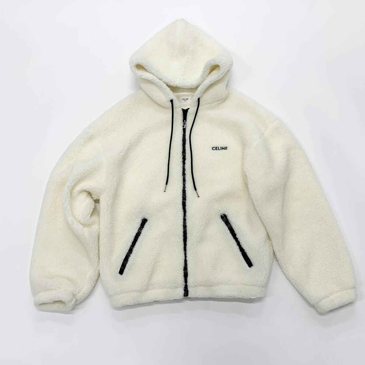 セリーヌ トリオンフ ルーズフードフリースジャケット  ジップアップ アウター メンズ ホワイト
