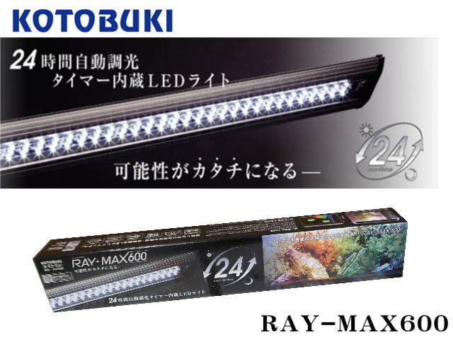 | 商品名:コトブキ レイマックス600 RAYMAX 目指したのは自然光の再現!24時間自動調光 タイマー内臓のLEDライト ・デフォルトの設定を使えばセット後すぐに24時間オートサイクルが使えます。 ・RGB+W(白)の4つのLEDで自分好みの色を作れます。 ・カスタム設定でオリジナル設定色での24時間オートサイクルが可能 ・操作は専用リモコンで全てコントロール ・可動式リフトアップパーツにすることにより、LEDを水槽から外すことなく メンテナンスが出来ます。 ・天候ボタンで曇り、雷、晴天、月夜を再現します。 ・照射角度120度、水槽全体を明るく照らす高輝度SMD LED ■商品仕様 定格電圧:AC100 50/60Hz 定格消費電力:24W 定格出力電力:DC15V 適応水槽:60~65cm水槽 寸法:W630xD75xH110mm 全高速ルーメン:1880lm |