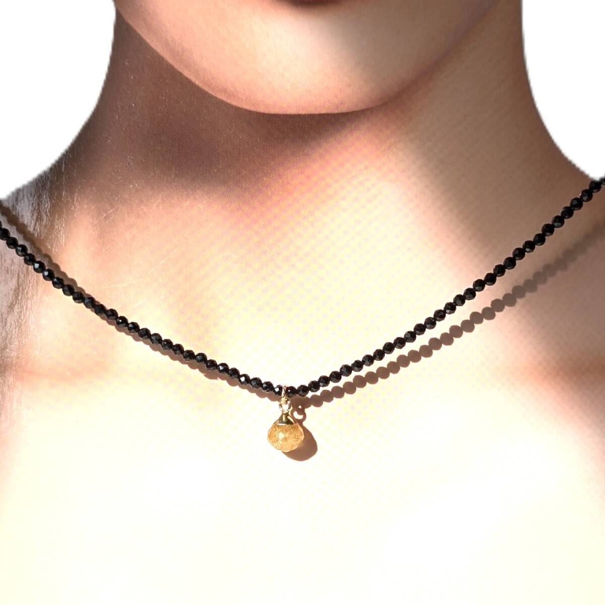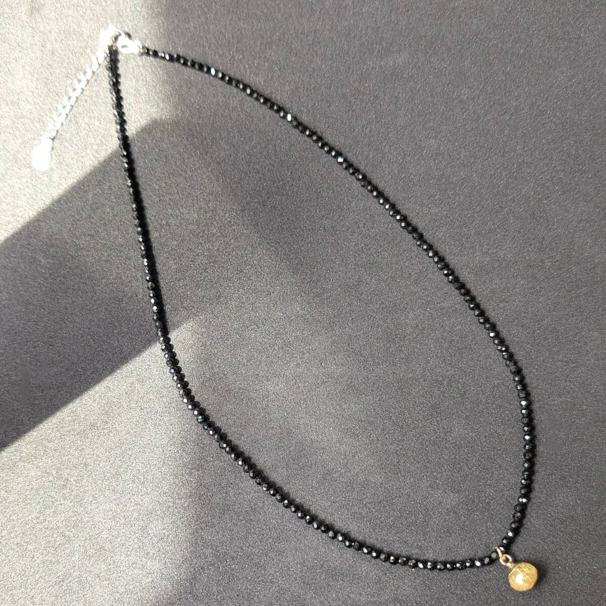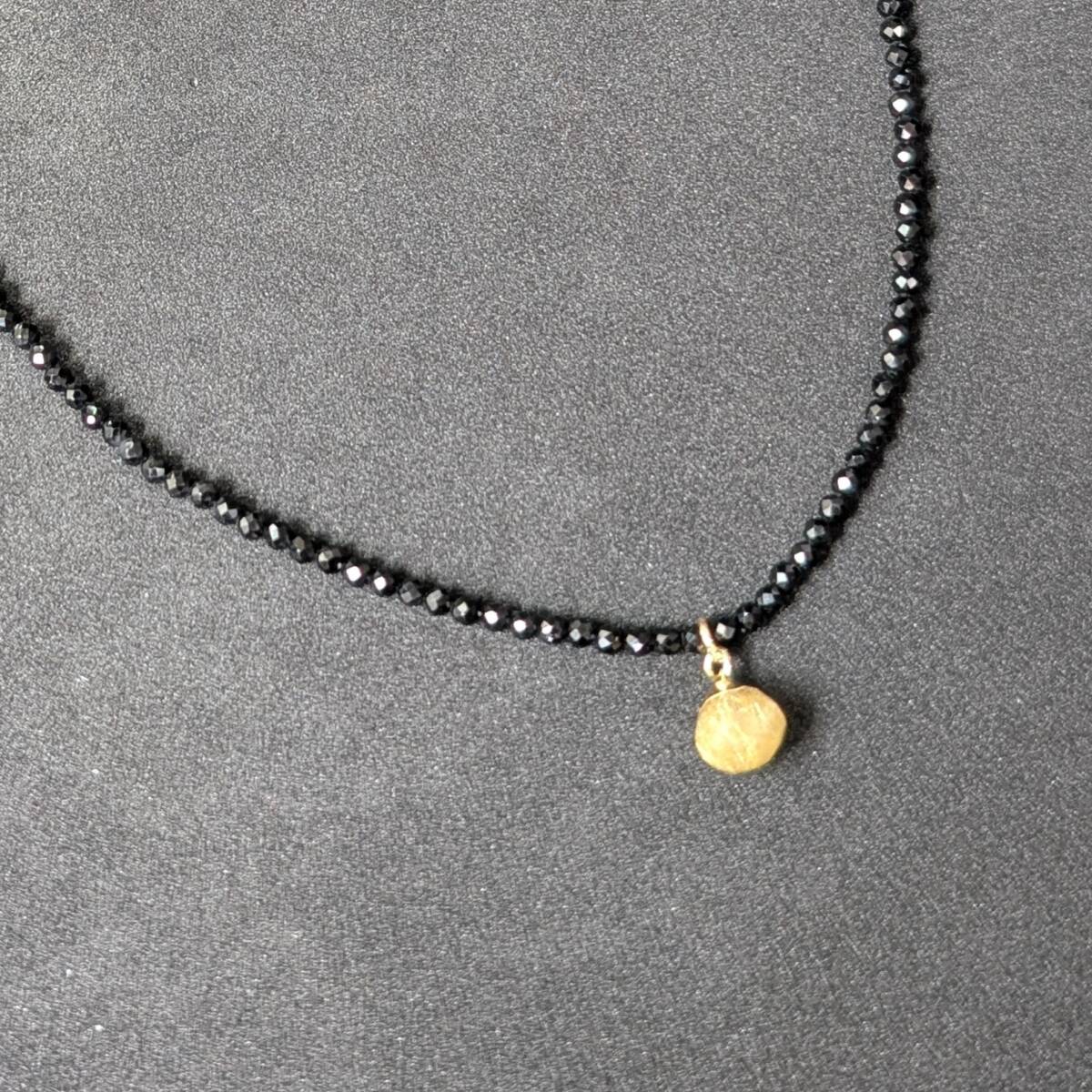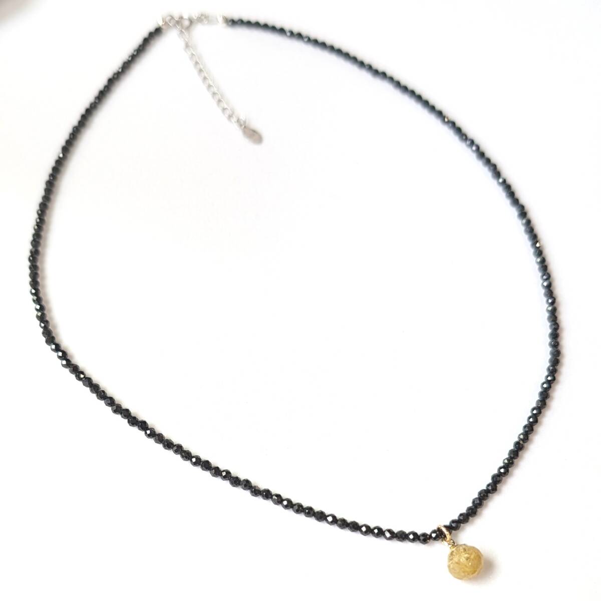 ☆芸能人やスポーツ選手がよく身に着けているブラックスピネルに、ブリオレットカットを施したゴールドルチルチャームを合わせてデザインしたネックレスになります!