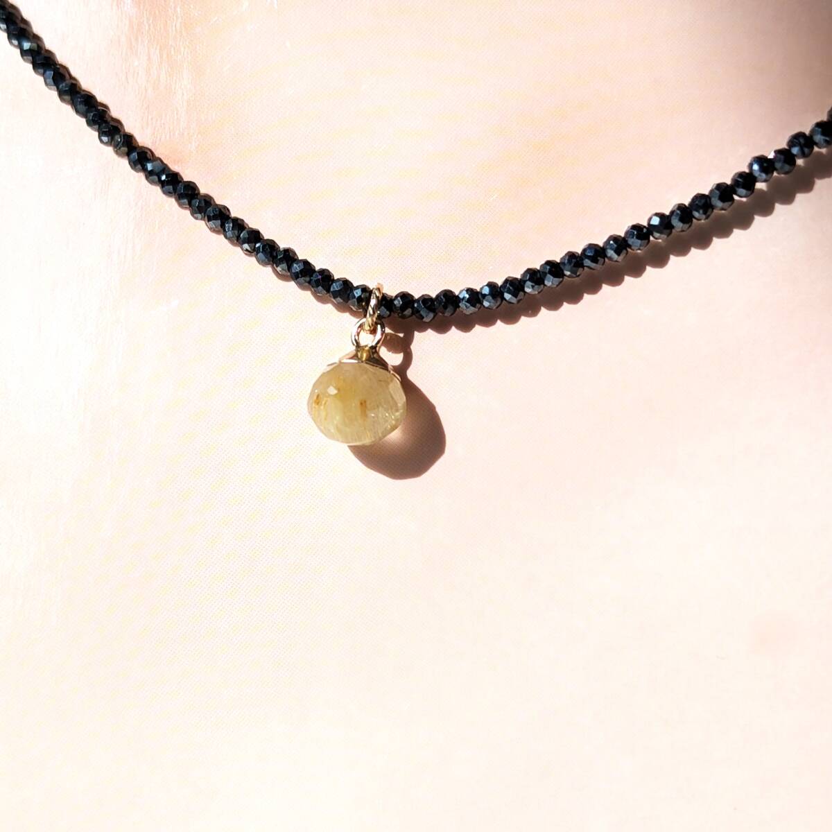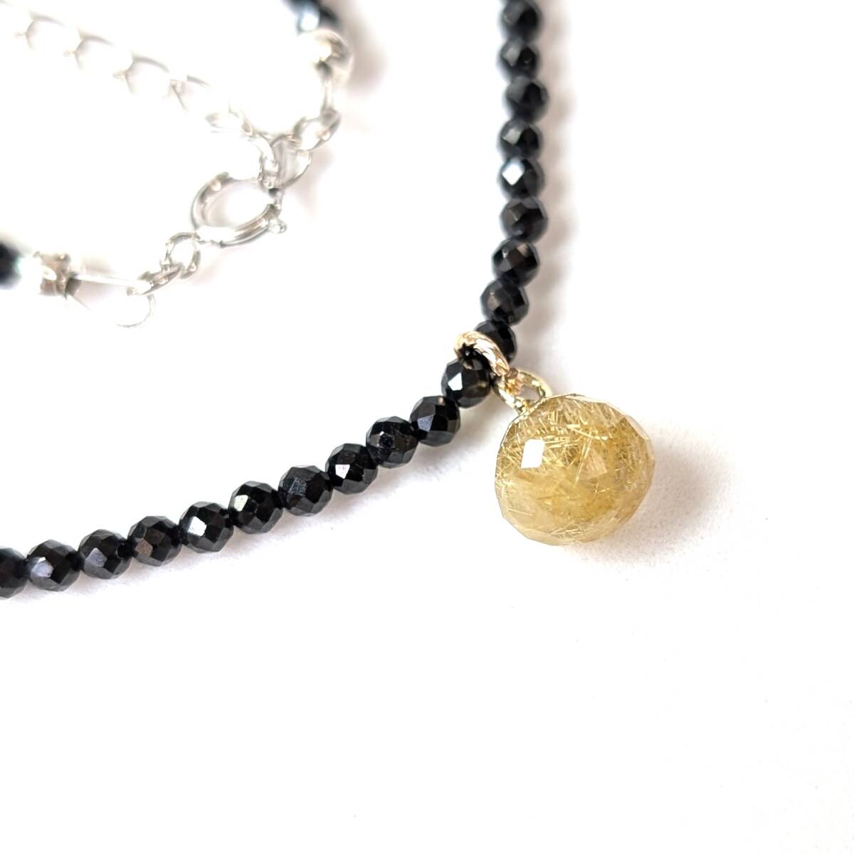 ゴールドルチルクォーツチャーム ブラックスピネル ネックレスの長さを選べてアジャスターでサイズ調節もできる 光り輝くエナジーストーン