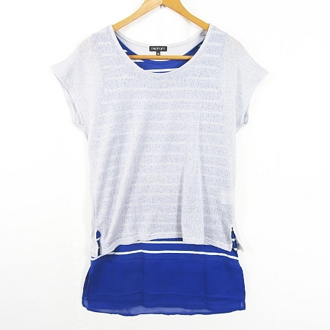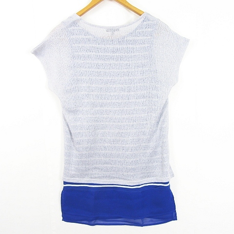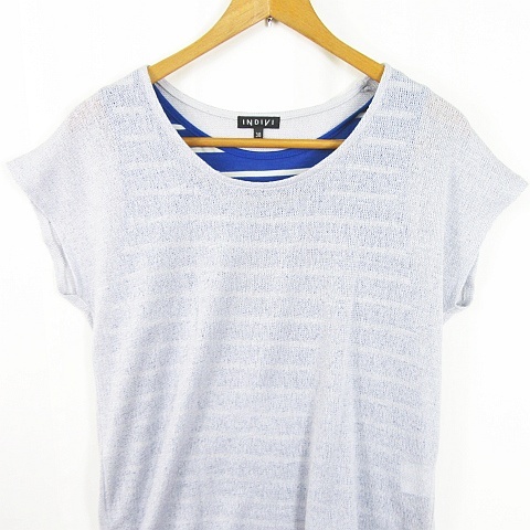 インディヴィ INDIVI ニット カットソー タンクトップ 2点セット アンサンブル 38 ライトグレー ブルー ボーダー kz11720 レディース