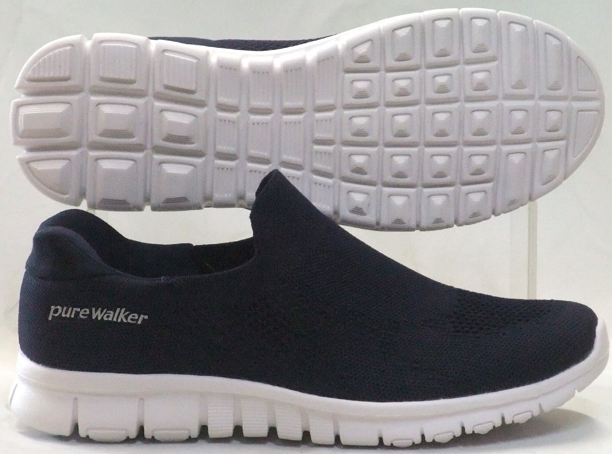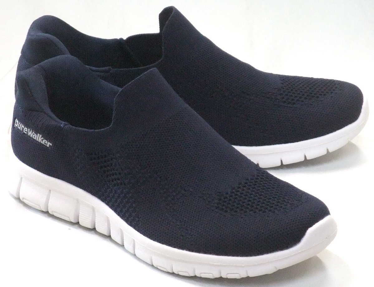 送料無料 ピュアウォーカー スライドフィット PW-1502 スリッポンニーカー ネイビー 24.5cm 軽量 ソフト 手を使わずに履ける 婦人靴