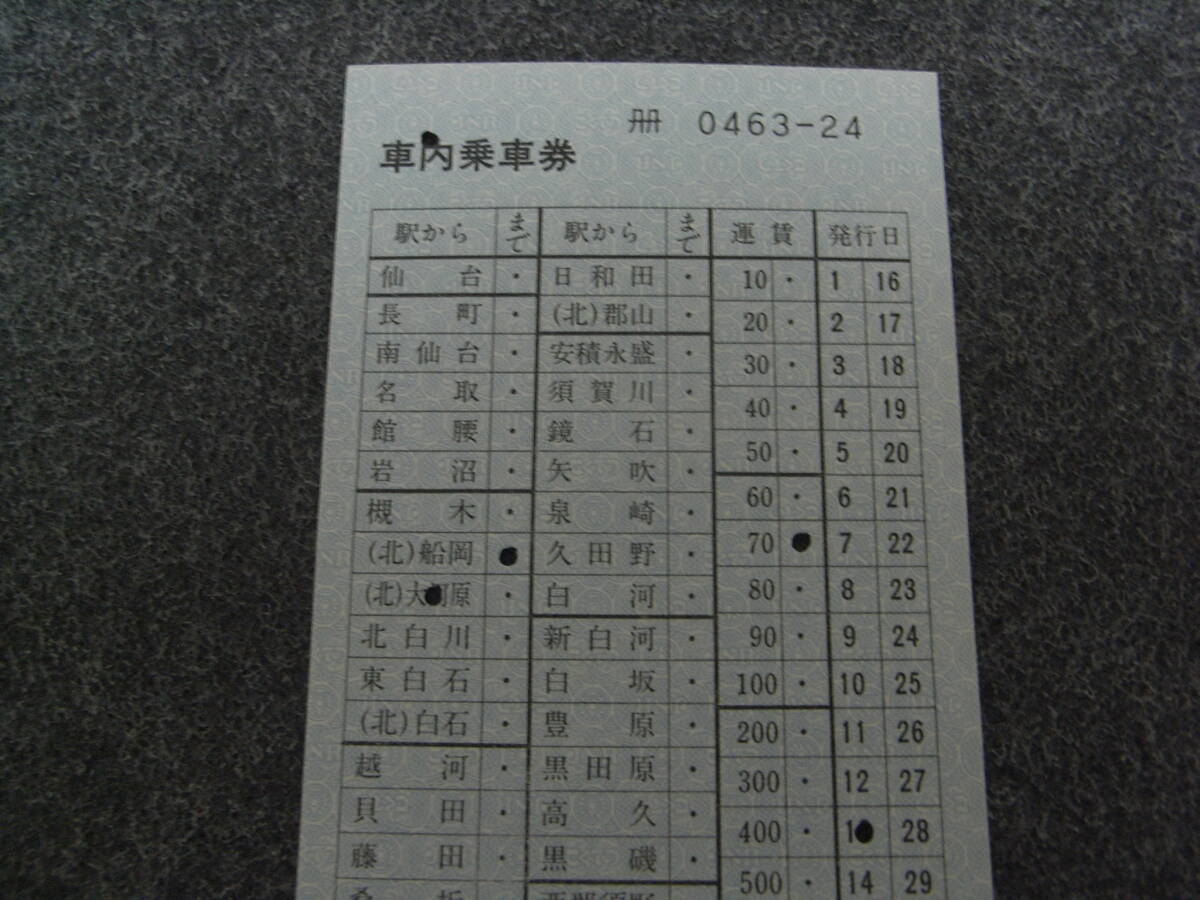車内乗車券 福島車掌区乗務員発行 0463-24 車内補充券