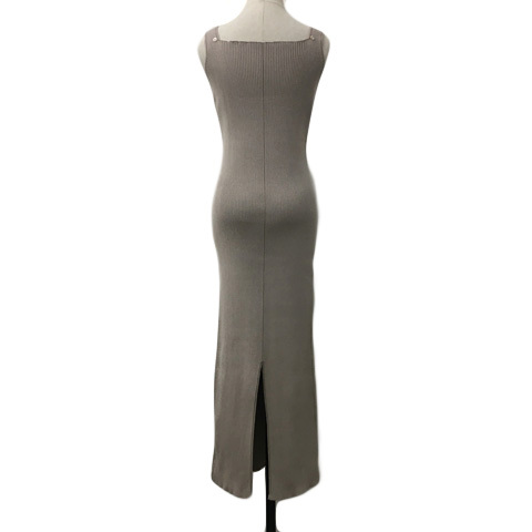 ココディール COCO DEAL ワンピース ニット Iライン ロング スクエアネック リブ ノースリーブ 1 ベージュ グレー レディース