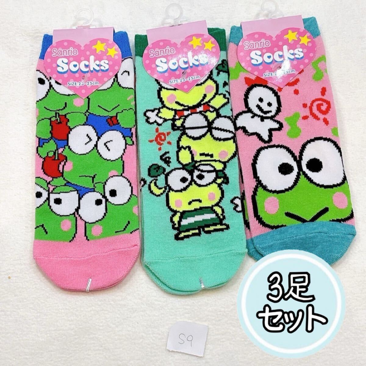 けろけろけろっぴ けろっぴ サンリオ レディース ショートソックス ショート丈 靴下 23〜25cm 3足セット フリーサイズ s9