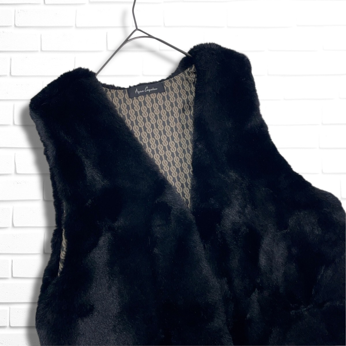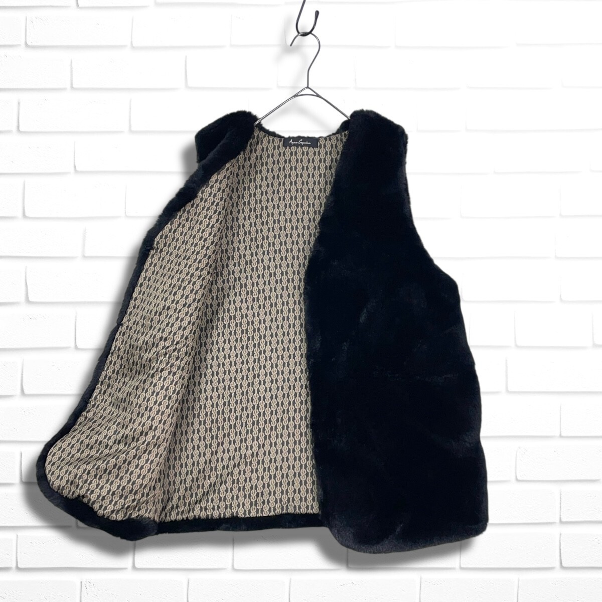 ◆美品◆ Anne Coquine アンコキーヌ フック エコ ファー ベスト 黒 ブラック レディース M ◆送料無料◆ 3905E◇
