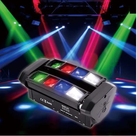 【会場の雰囲気、ガラッと変わるで!】音楽に合わせてピカピカ光る8つのスパイダーライトは、音楽と光が一緒になって、イベントとかパーティー、ステージをめっちゃ盛り上げる照明やで、ほんま!