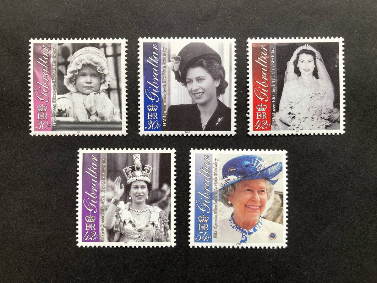 (イギリス海外領土)ジブラルタル 2001年 発行  「エリザベス2世75歳誕生日」 5種完 未使用、NH(ヒンジ跡無)、糊付です。