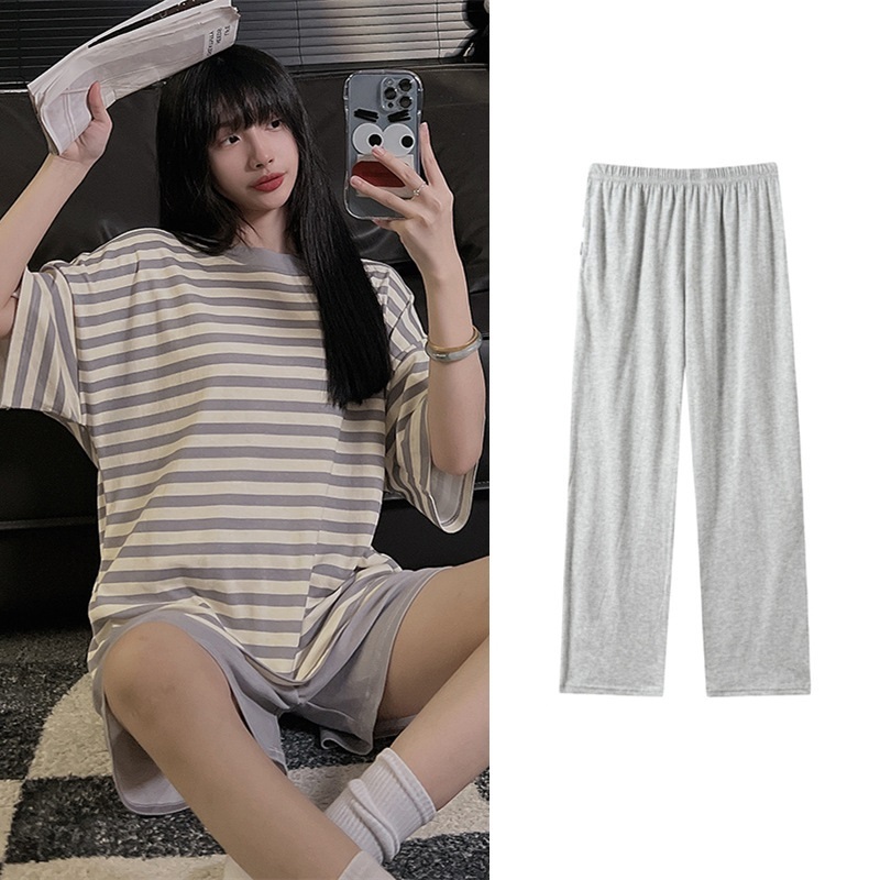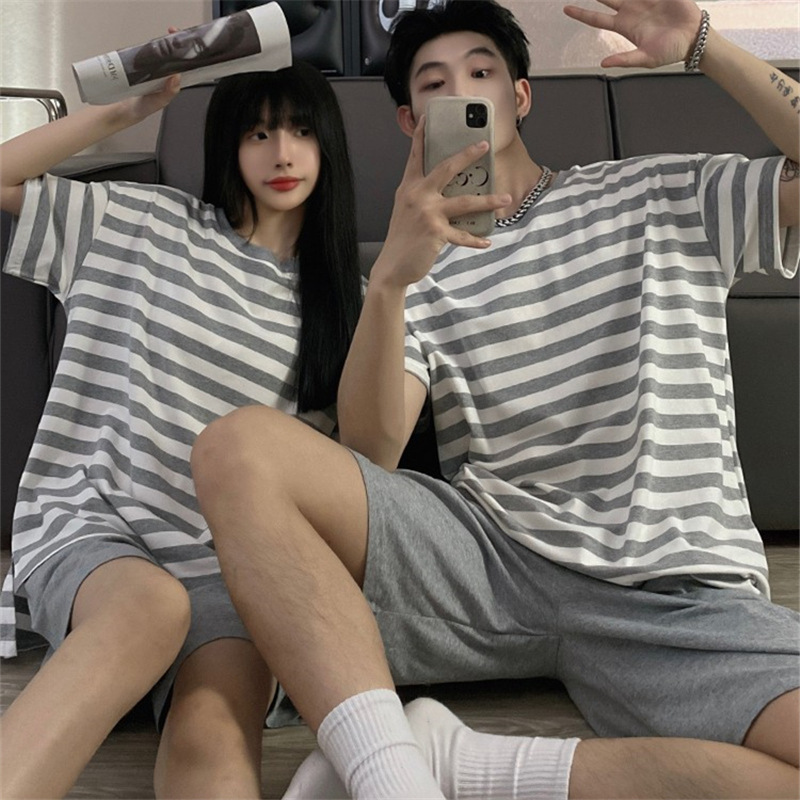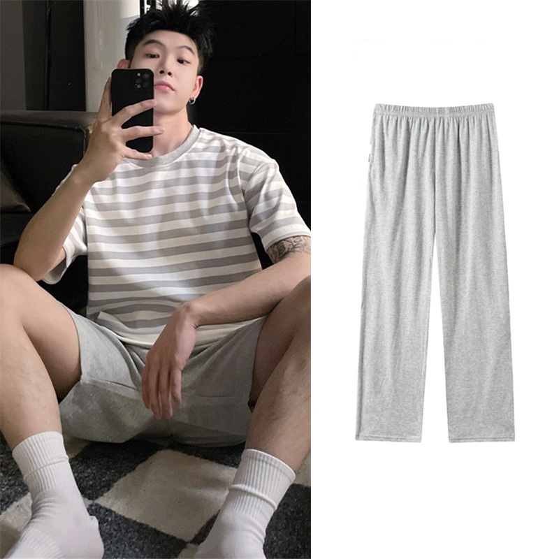 上質パジャマ メンズ レディース 3点セット (半袖tシャツ+半パンツ+長パンツ) 春夏秋半袖 丸首 ルームウェア男性用女性用2色/M~3XL選択/1点