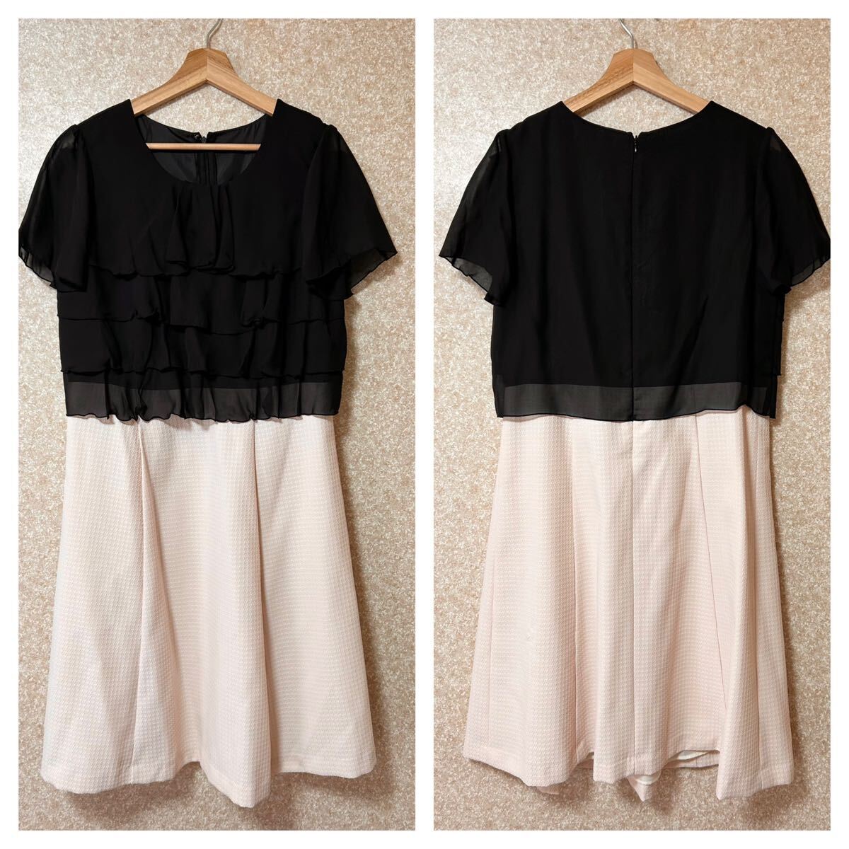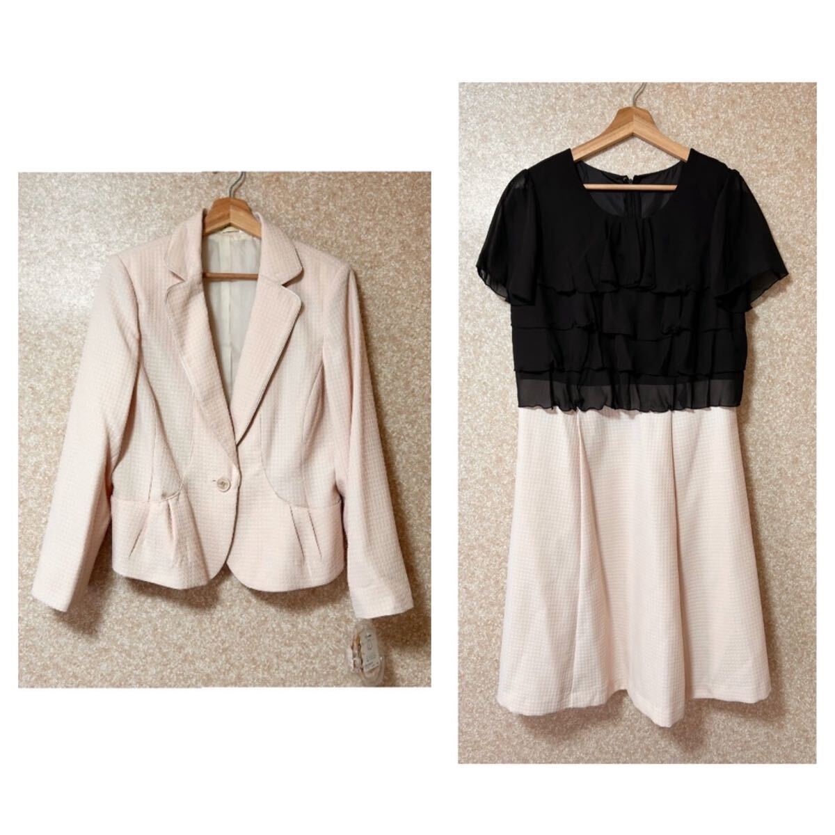 corbeauの大きいサイズのジャケットとワンピースのセットスーツです。元々ジャケット、スカート、ワンピースの3点セットでしたが未使用のジャケットとワンピースの2点のみを出品させて頂きますのでご了承ください。お色はブラック×ベージュのお色味です。ワンピースはバック部分にファスナーがついています。サイズは17号ですが小さめのお作りで13号〜15号位の大きさになっています。平置きで計測したものを記載しておりますのでご参考にしてください。